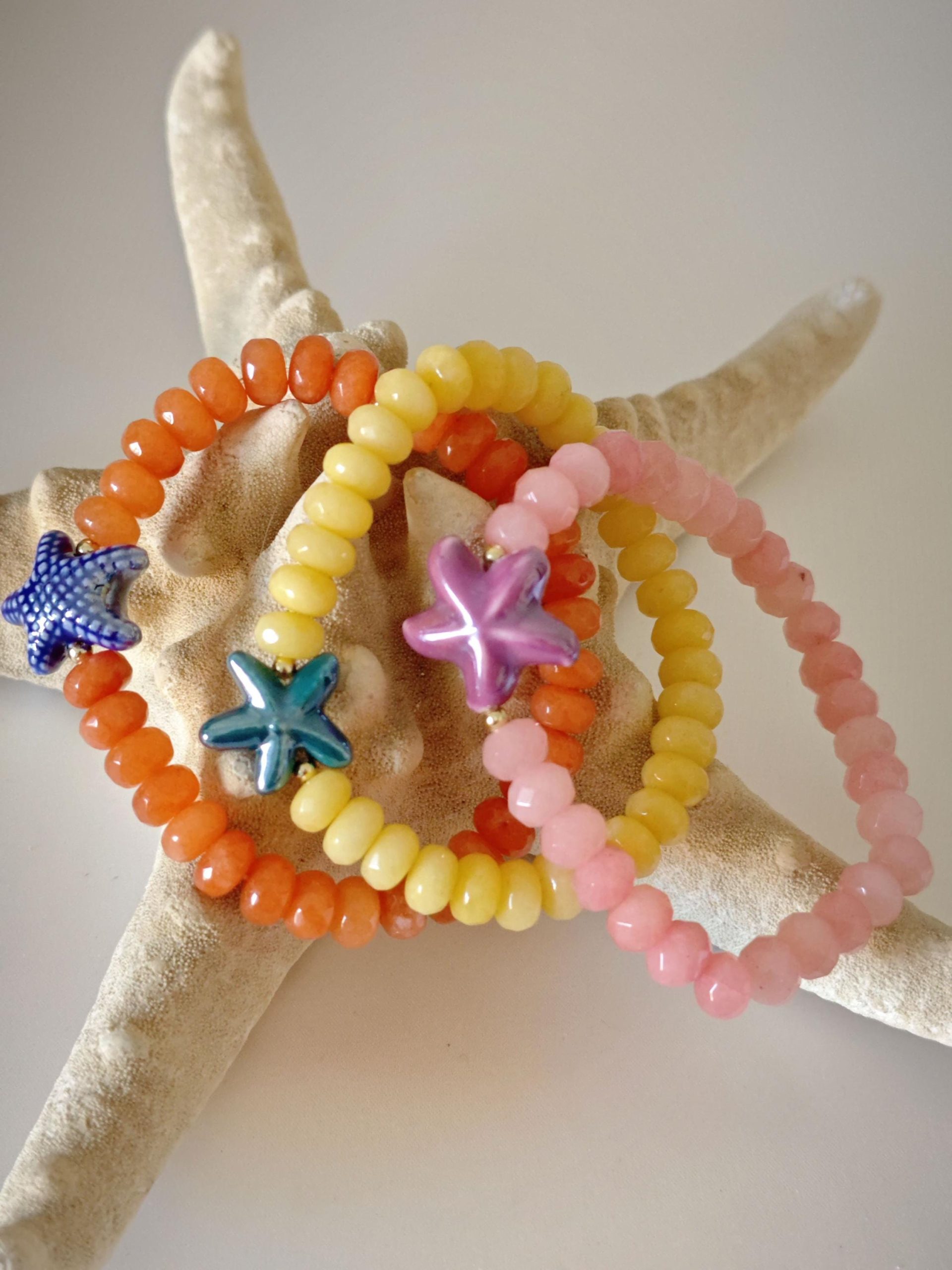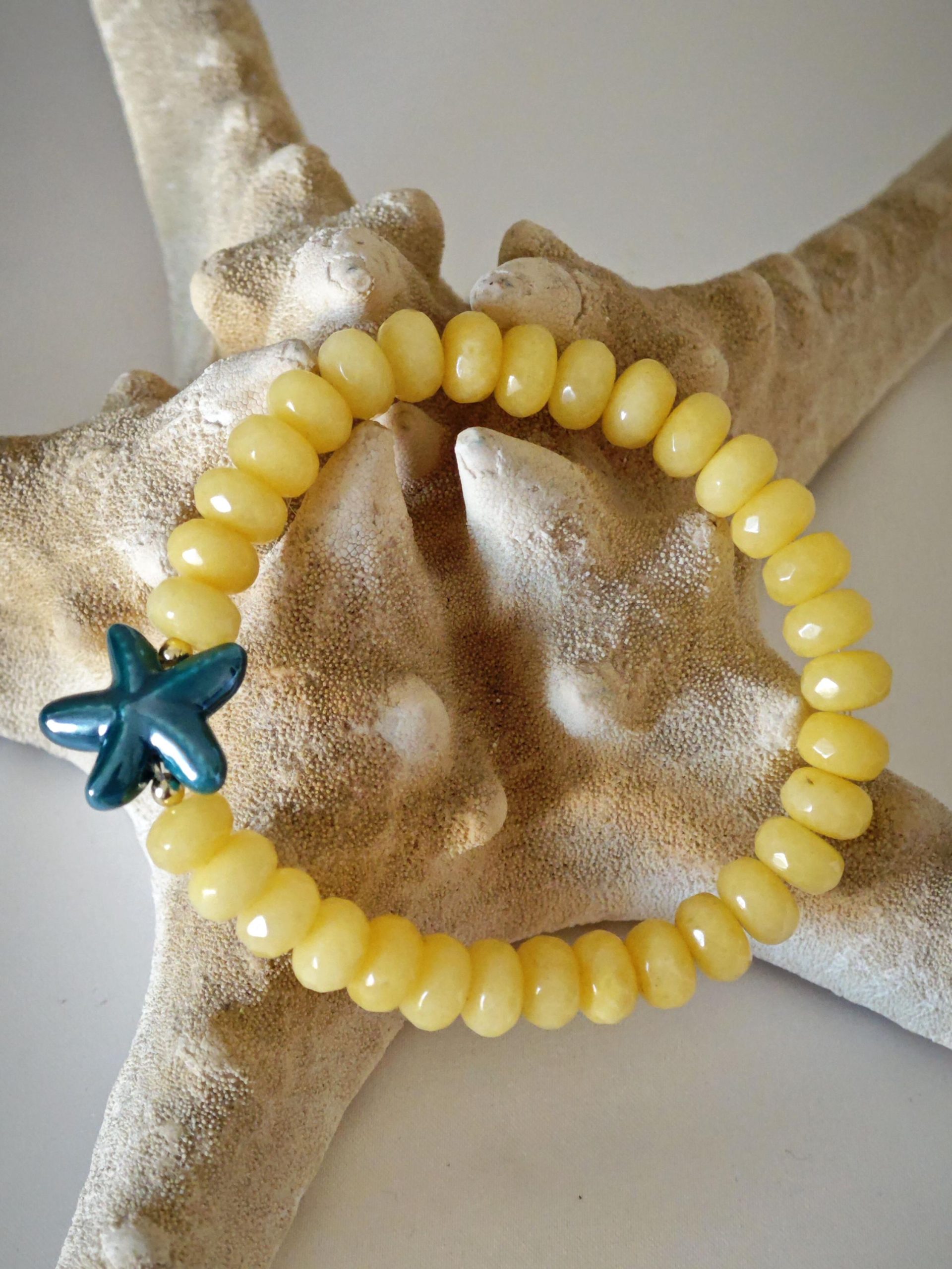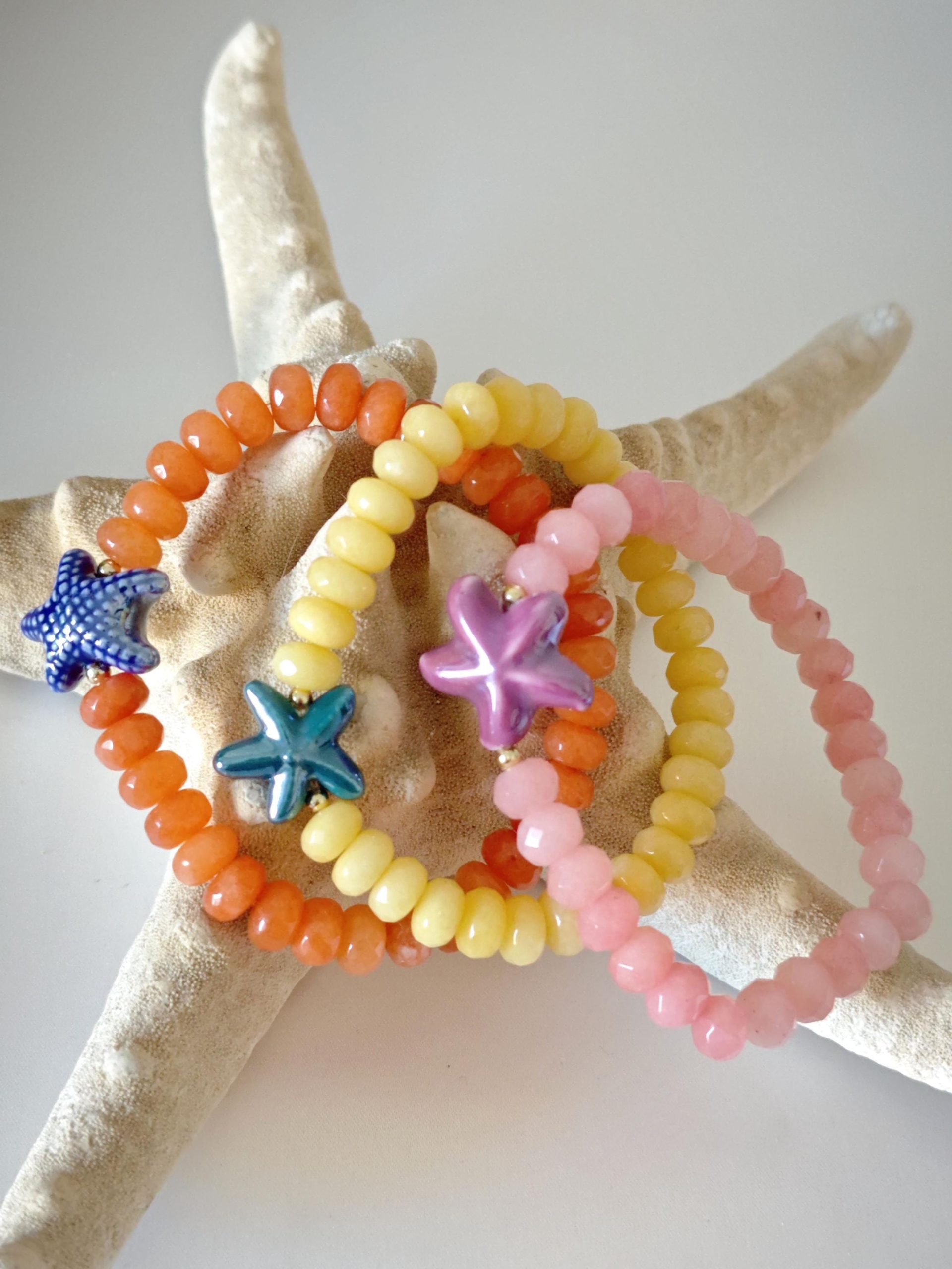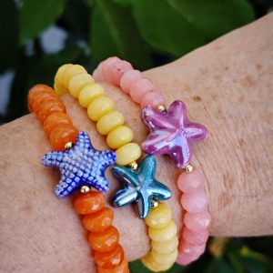Bracciale stelle marine ceramica con pietre dure, bracciale estate italiana