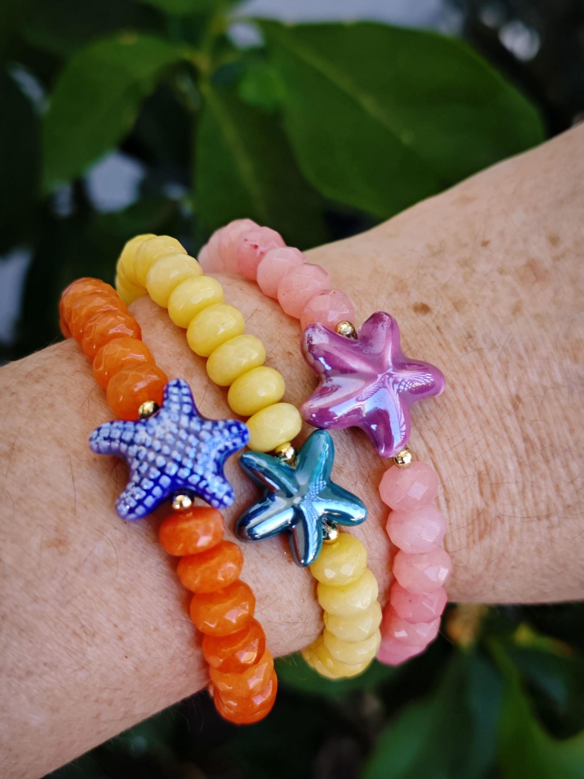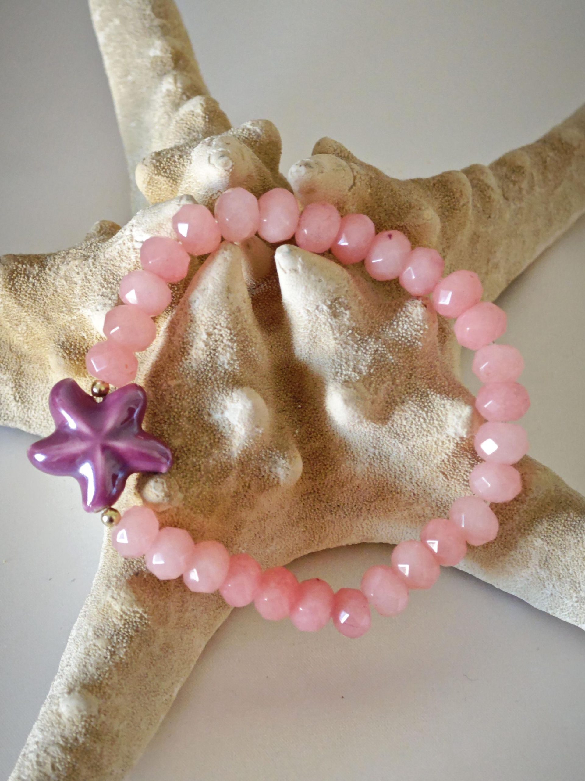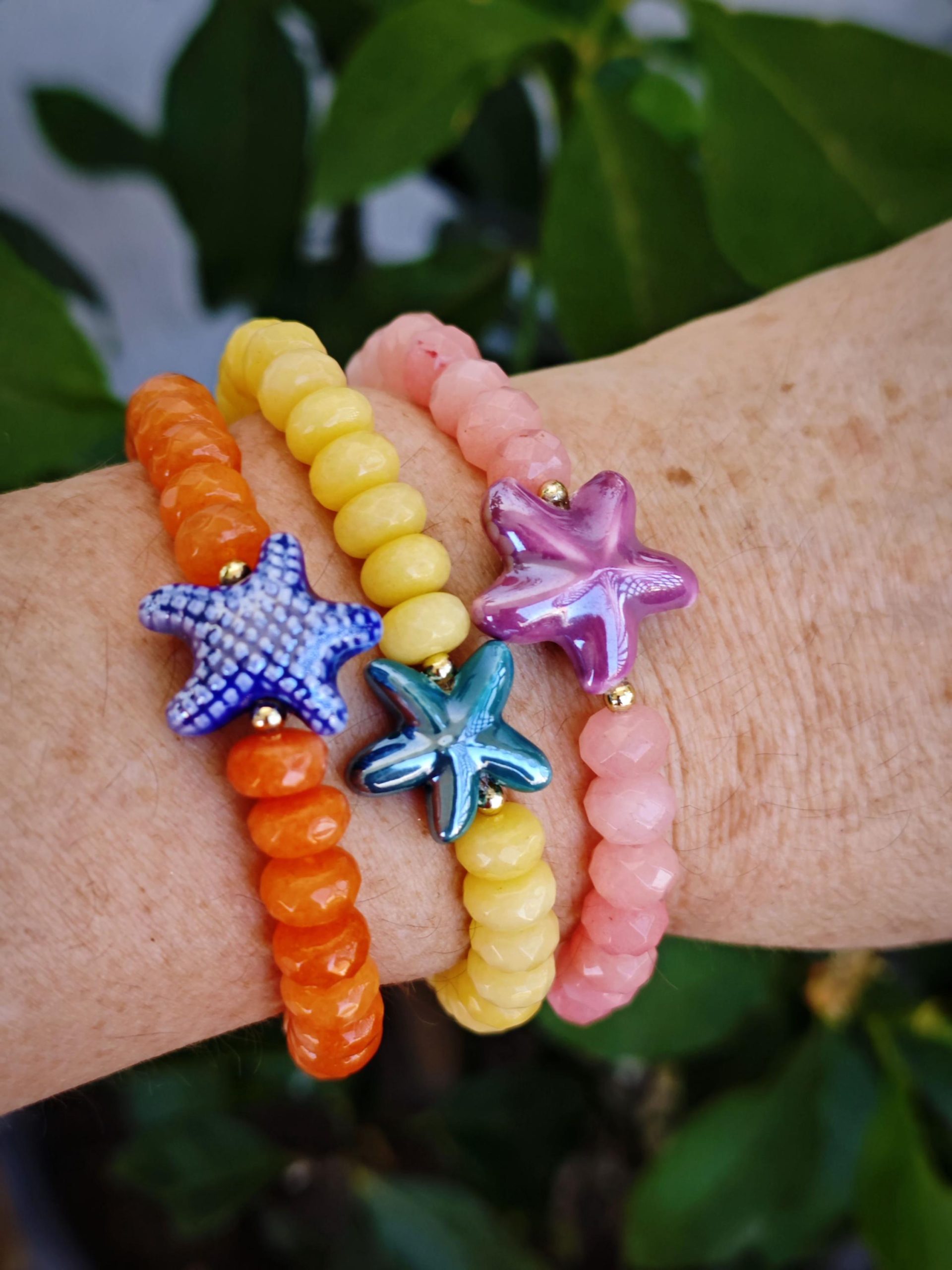 Bracciale stelle marine ceramica con pietre dure, bracciale estate italiana
