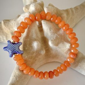 Bracciale elastico realizzato a mano con stelle marine in ceramica e pietre dure agata a rondelle.