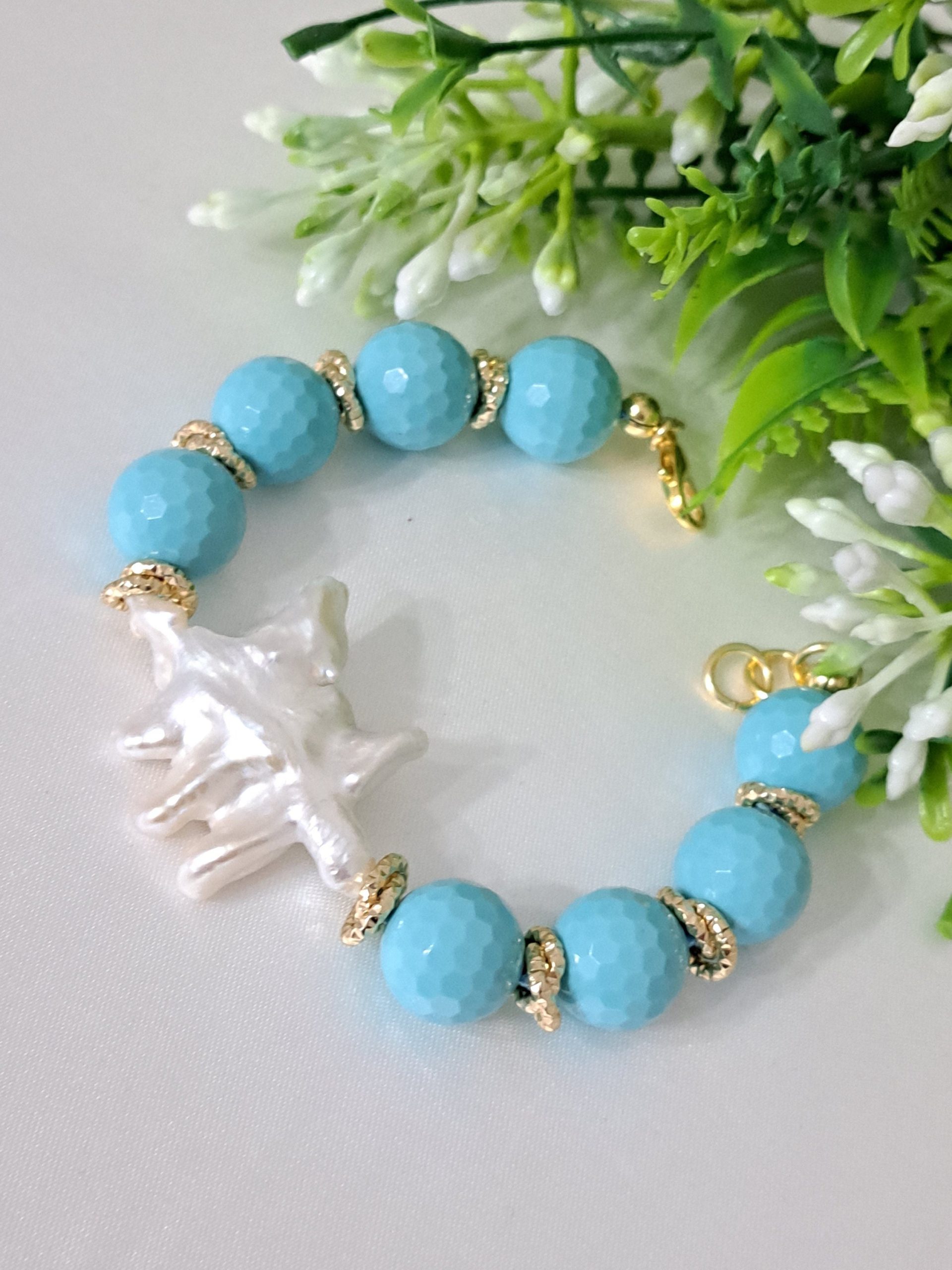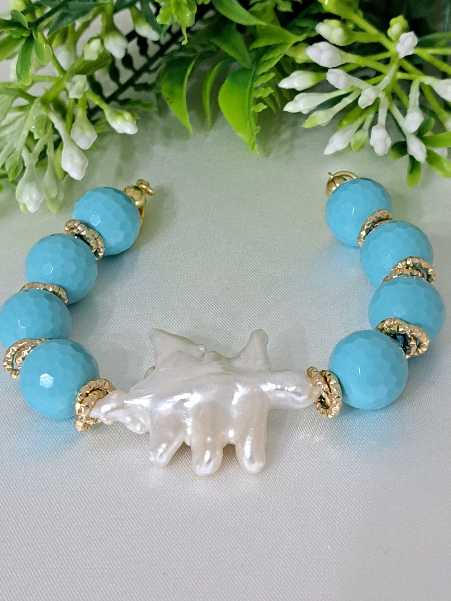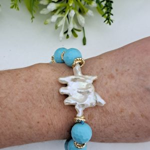 Bracciale turchese con perle barocche bianche, bracciale maxi