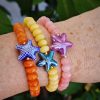 Bracciale pesce ceramica Caltagirone con perle bianche e stelle marine, bracciale siciliano