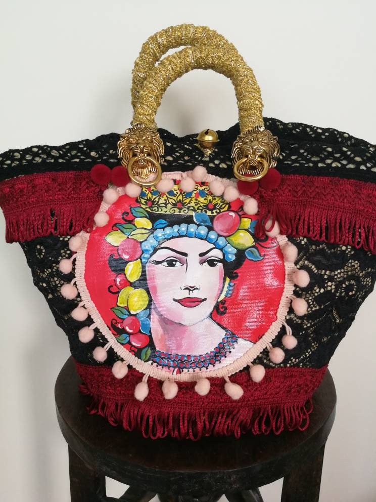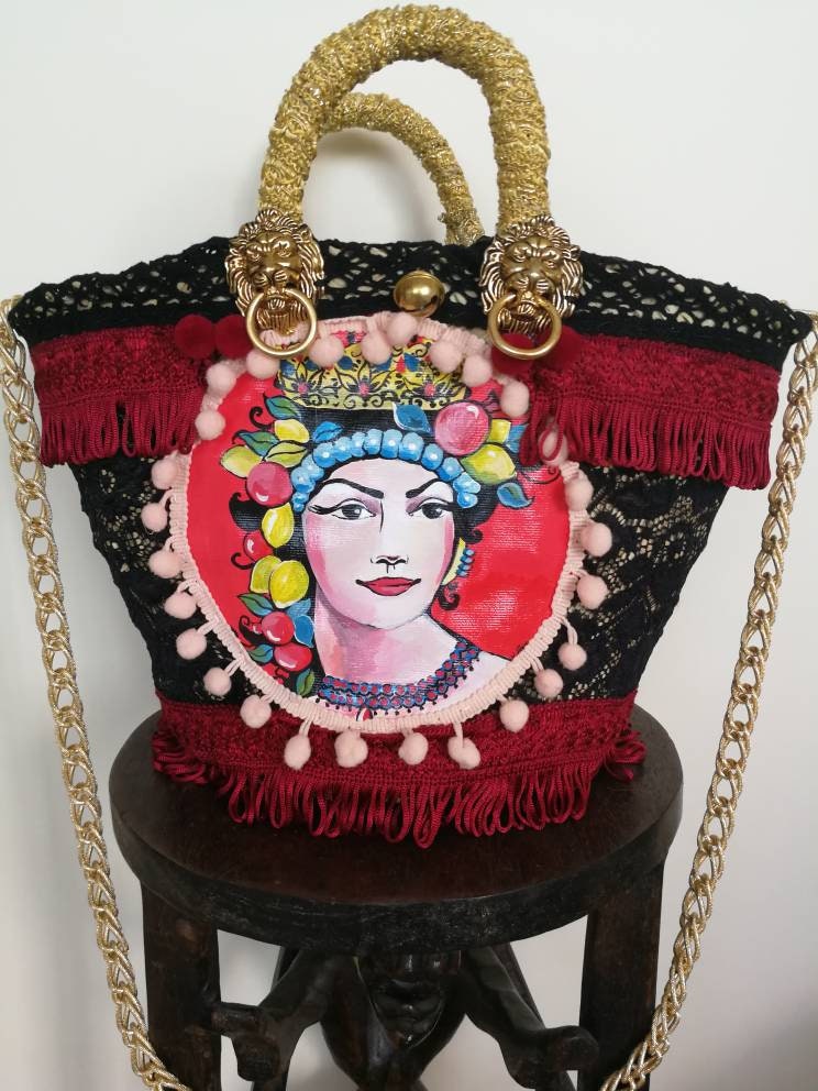 Coffa siciliana,borsa siciliana, borsa dipinta a mano misura media, sicilian bag