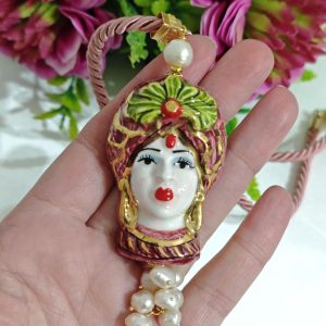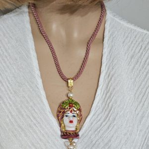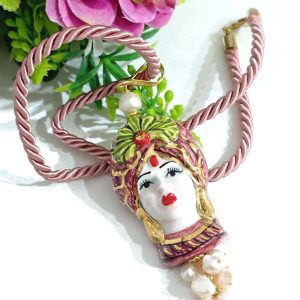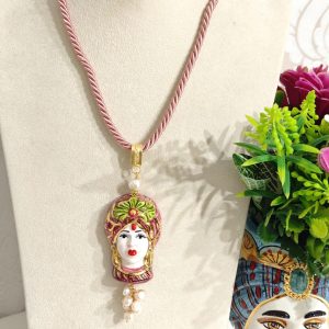 Categoria: Collane Siciliane Tag: ceramica_Caltagirone, collana_Caltagirone, collana_corda, collana_dorata, collana_girocollo, collana_handmade, collana_pendente, collana_perle, collana_rosa, collana_siciliana, collana_testa_moro, perle_bianche