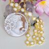 Collana cammeo conchiglia sardonica con perle bianche e catena dorata, gioielli italiani