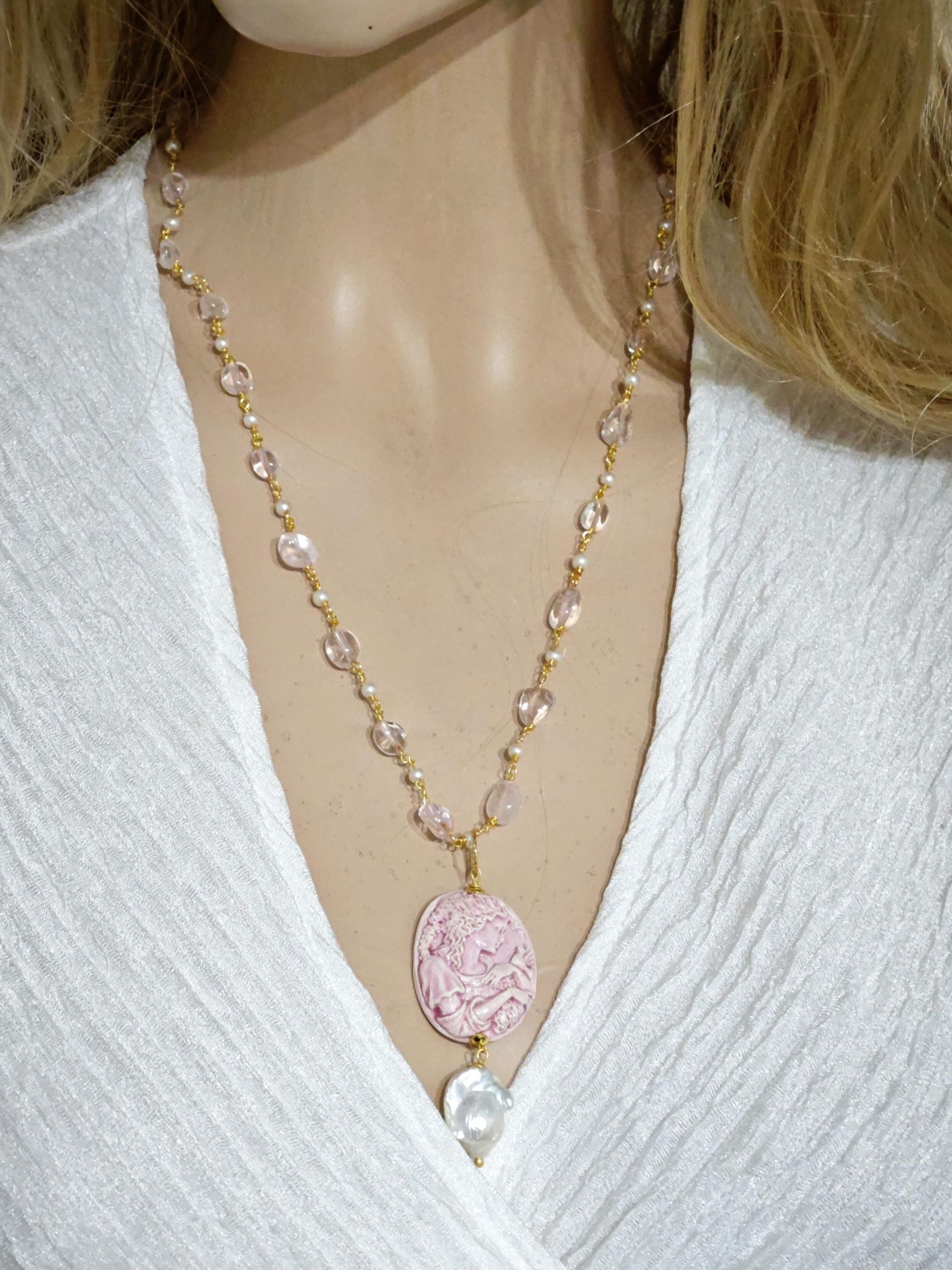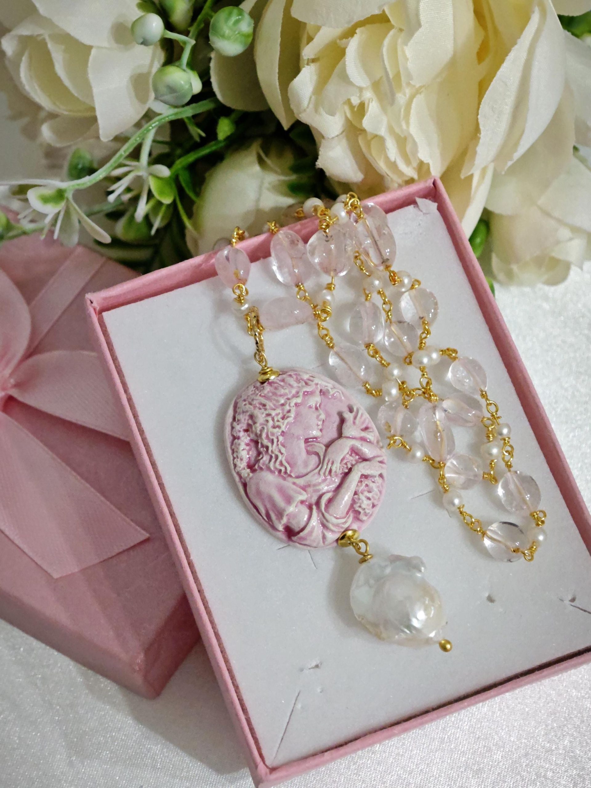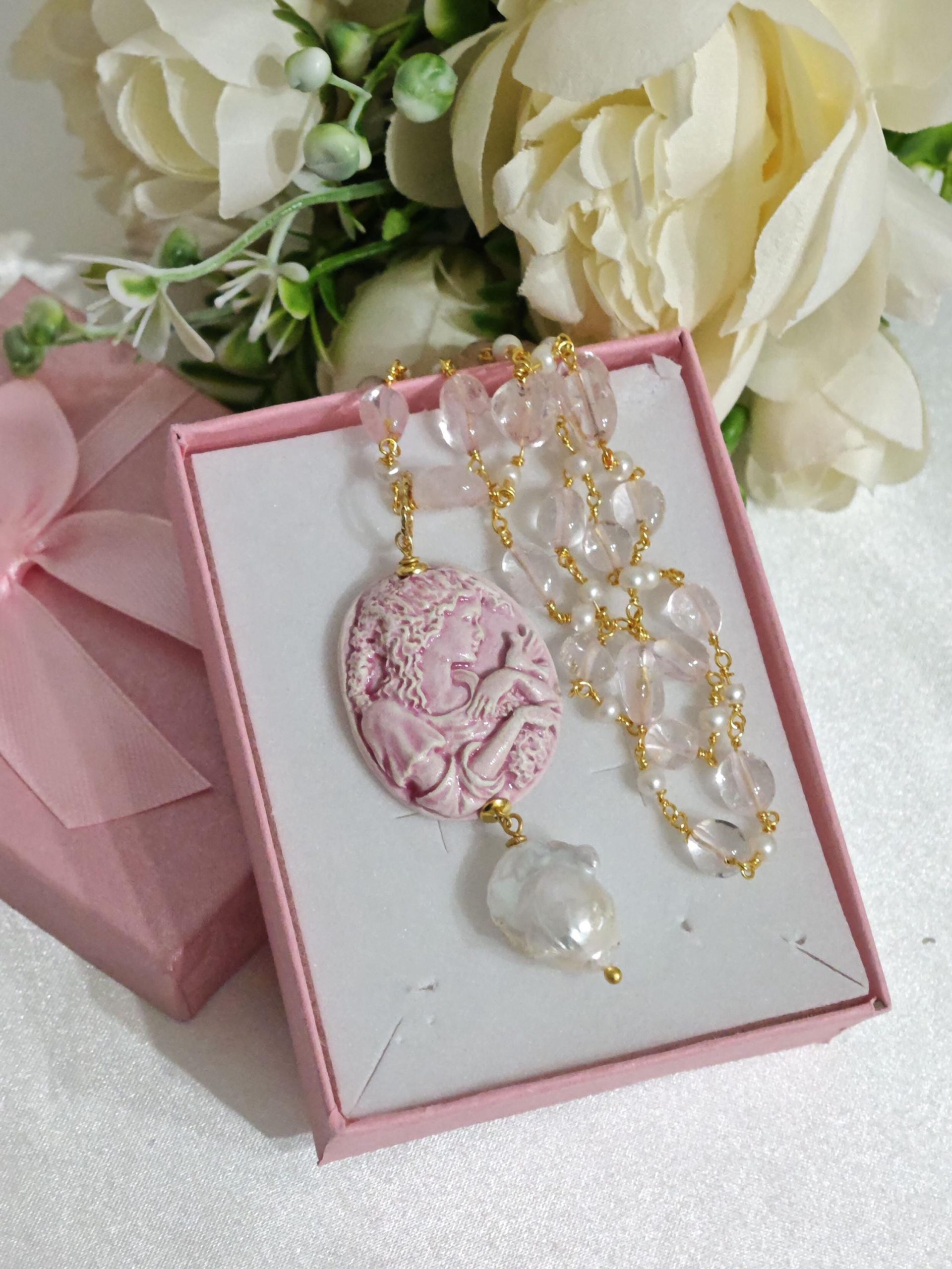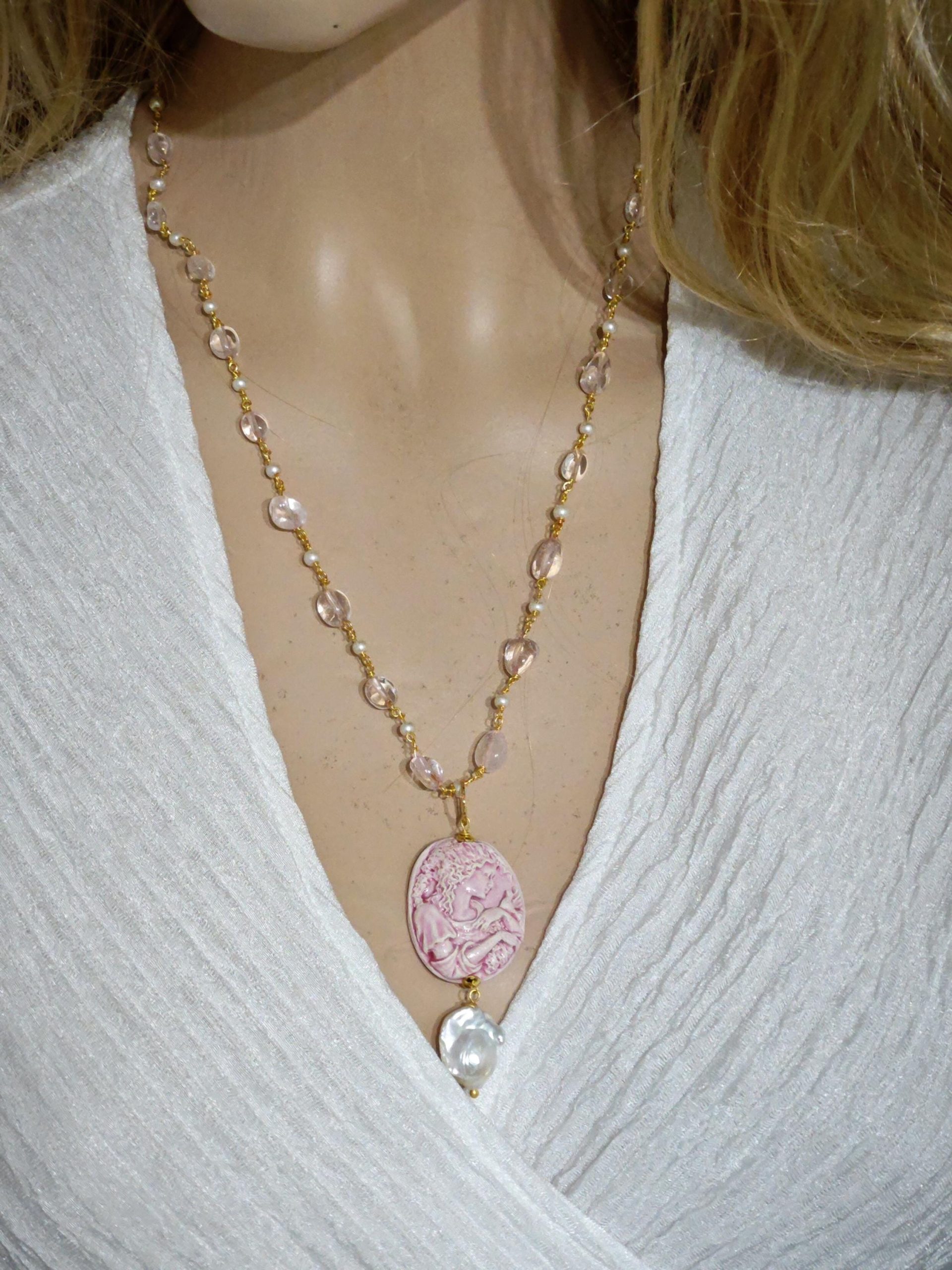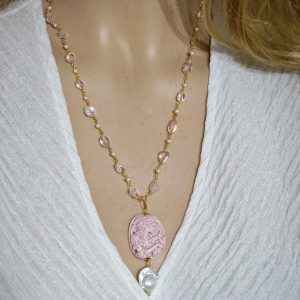 Categoria: Collane Cammeo Tag: collana_barocca, collana_Caltagirone, collana_cammeo, collana_handmade, collana_pendente, collana_perle, collana_quarzo, collana_rosario, collana_siciliana, perle_barocche, perle_goccia, quarzo_rosa