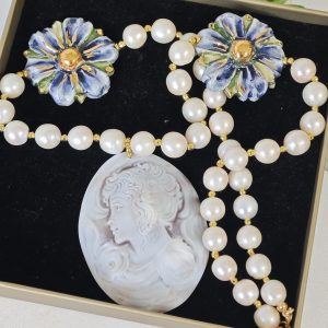 Collana cammeo moderno dama ,collana perle bianche , gioielli italiani