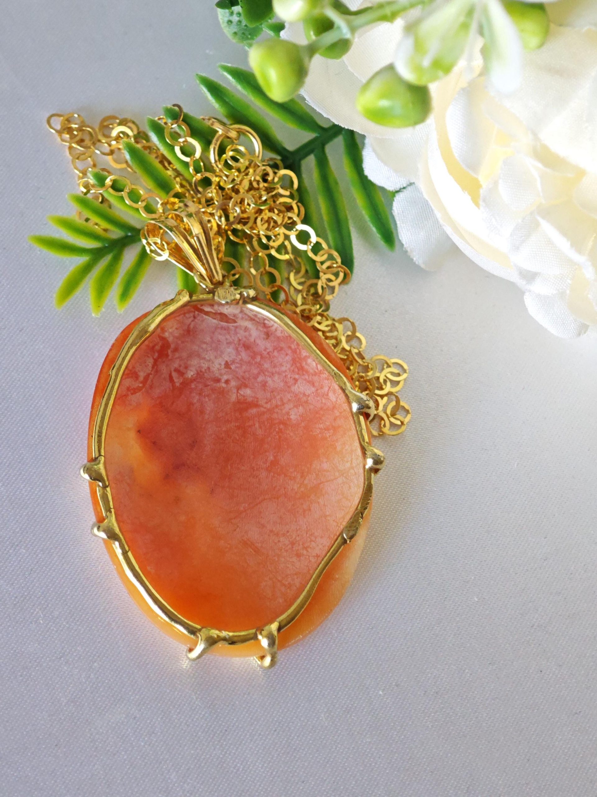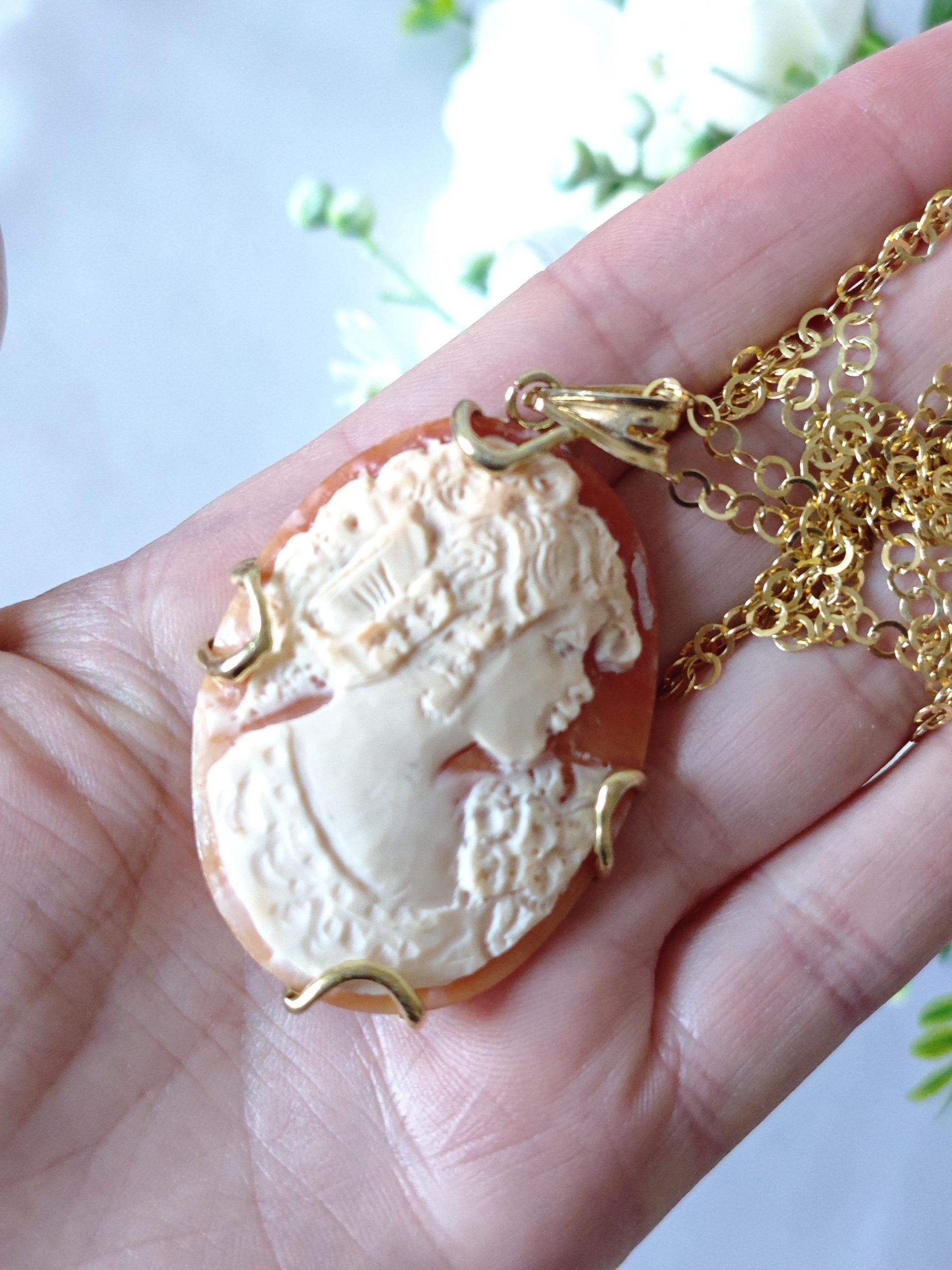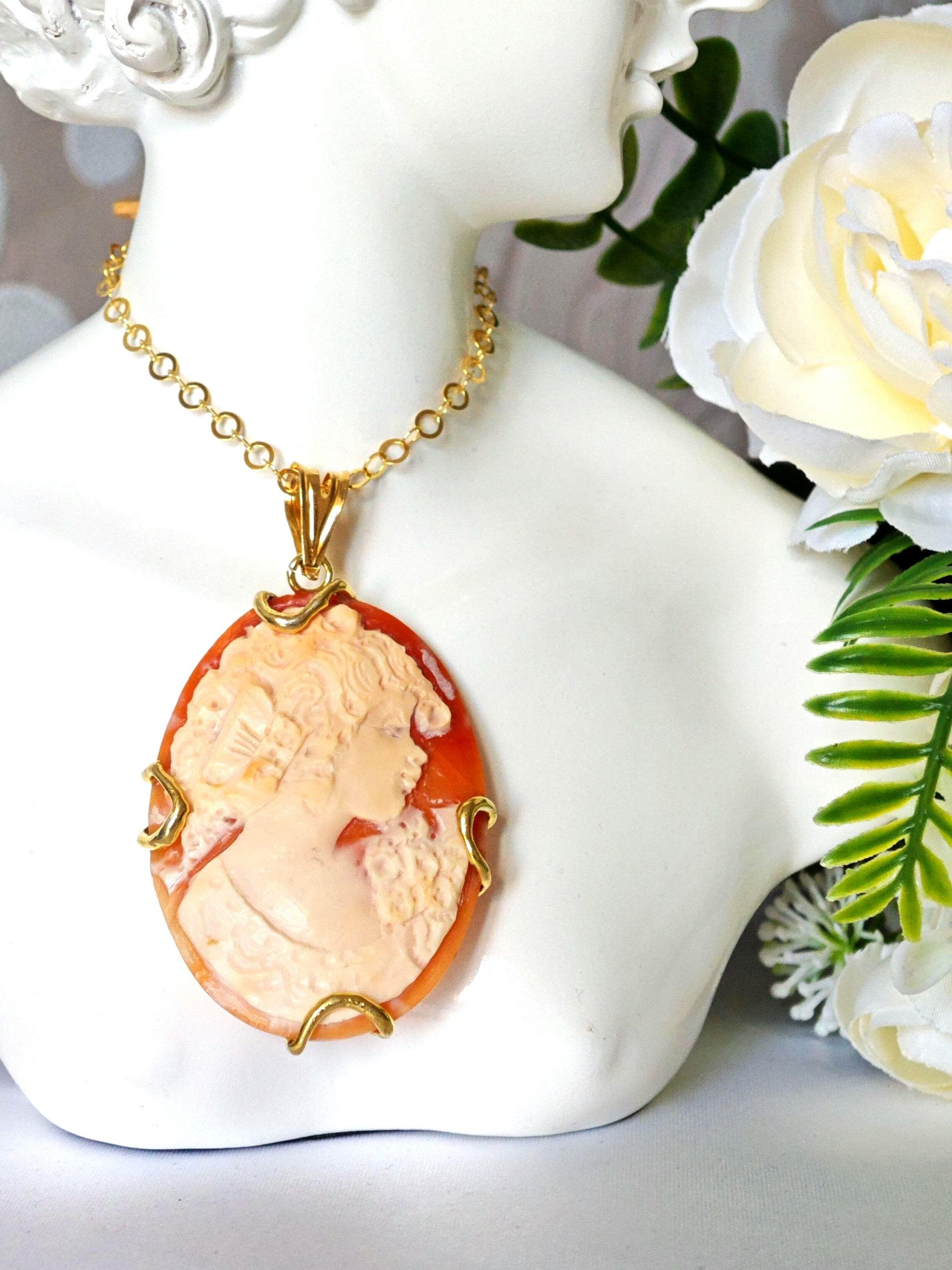 Collana cammeo conchiglia, pietre dure e argento 925 placcato oro , gioielli italiani, cammeo necklace