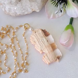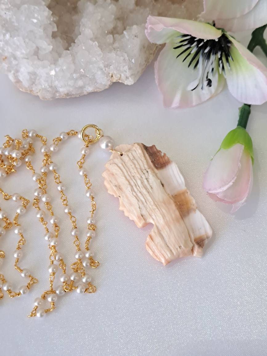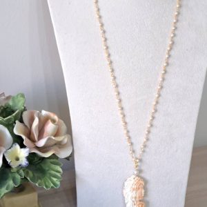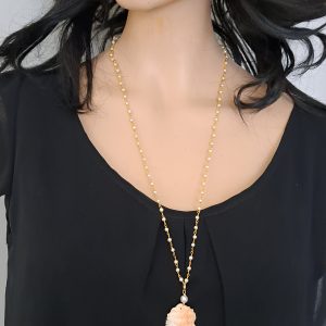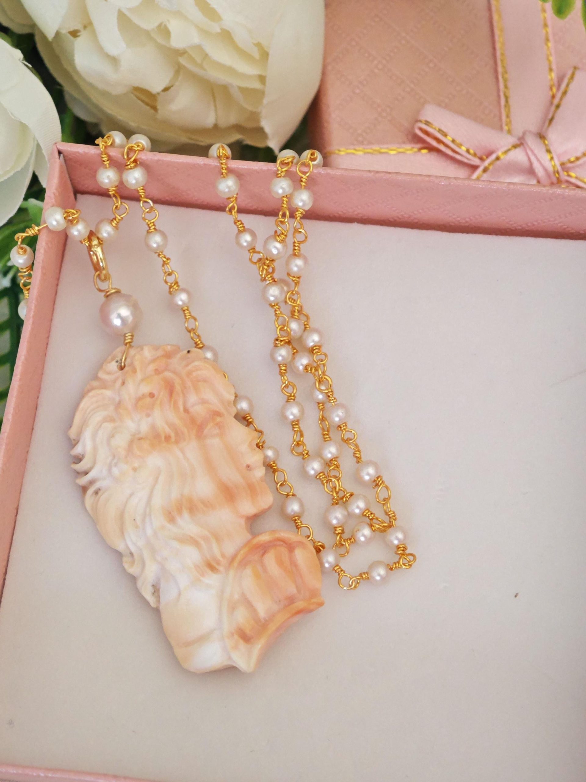 Collana cammeo conchiglia con perle bianche e pietre quarzo citrino, gioielli italiani