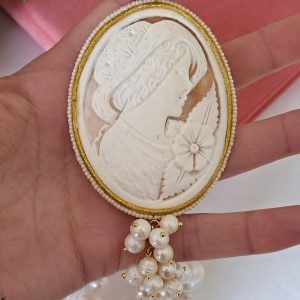 Collana cammeo moderno dama ,collana perle bianche , gioielli italiani