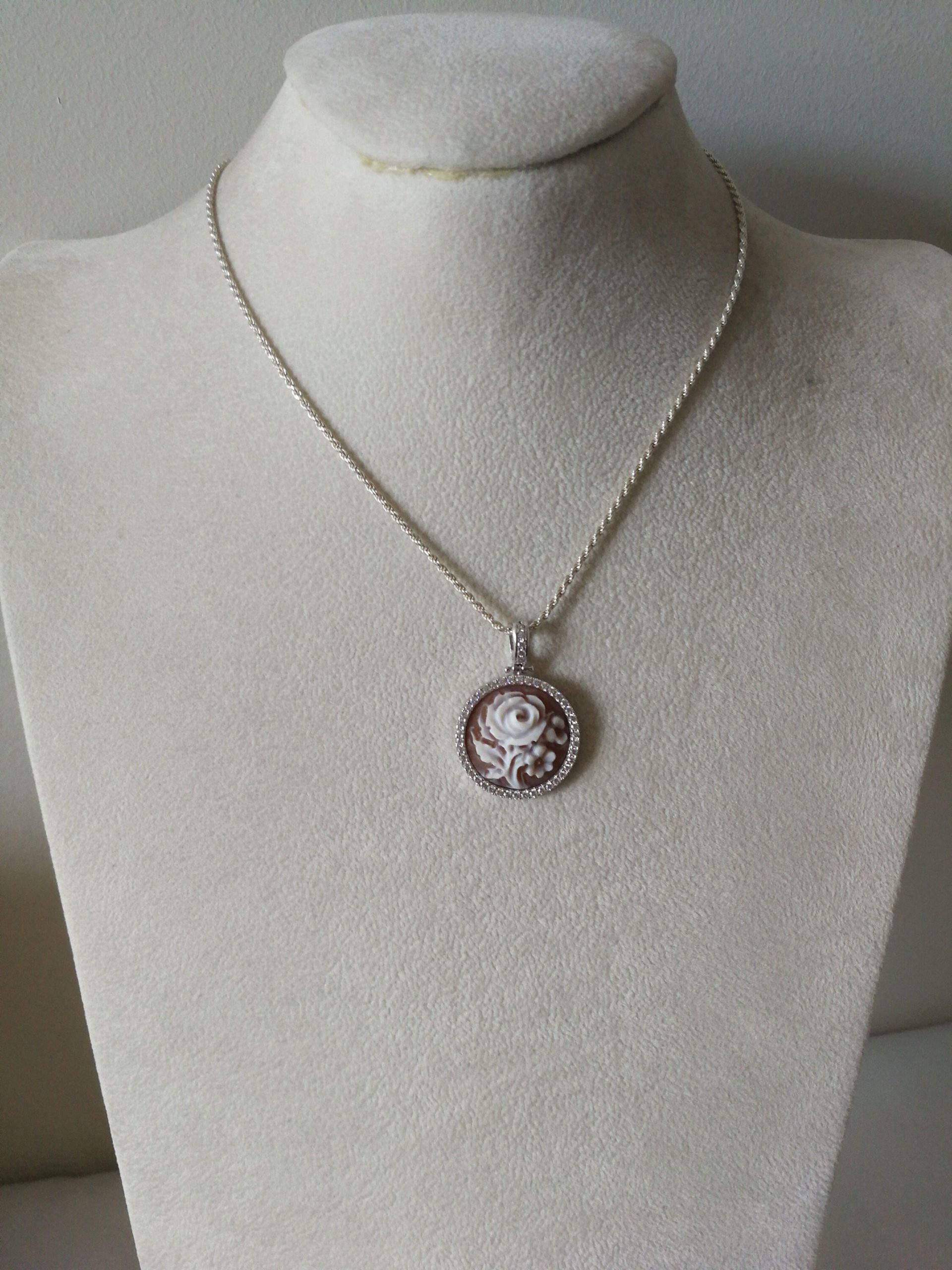 Categoria: Collane Cammeo Tag: Cammeo conchiglia, Cammeo originale, Cammeo sardonico, Cammeo zirconi, Collana argento, Collana cammeo, Zirconi bianchi