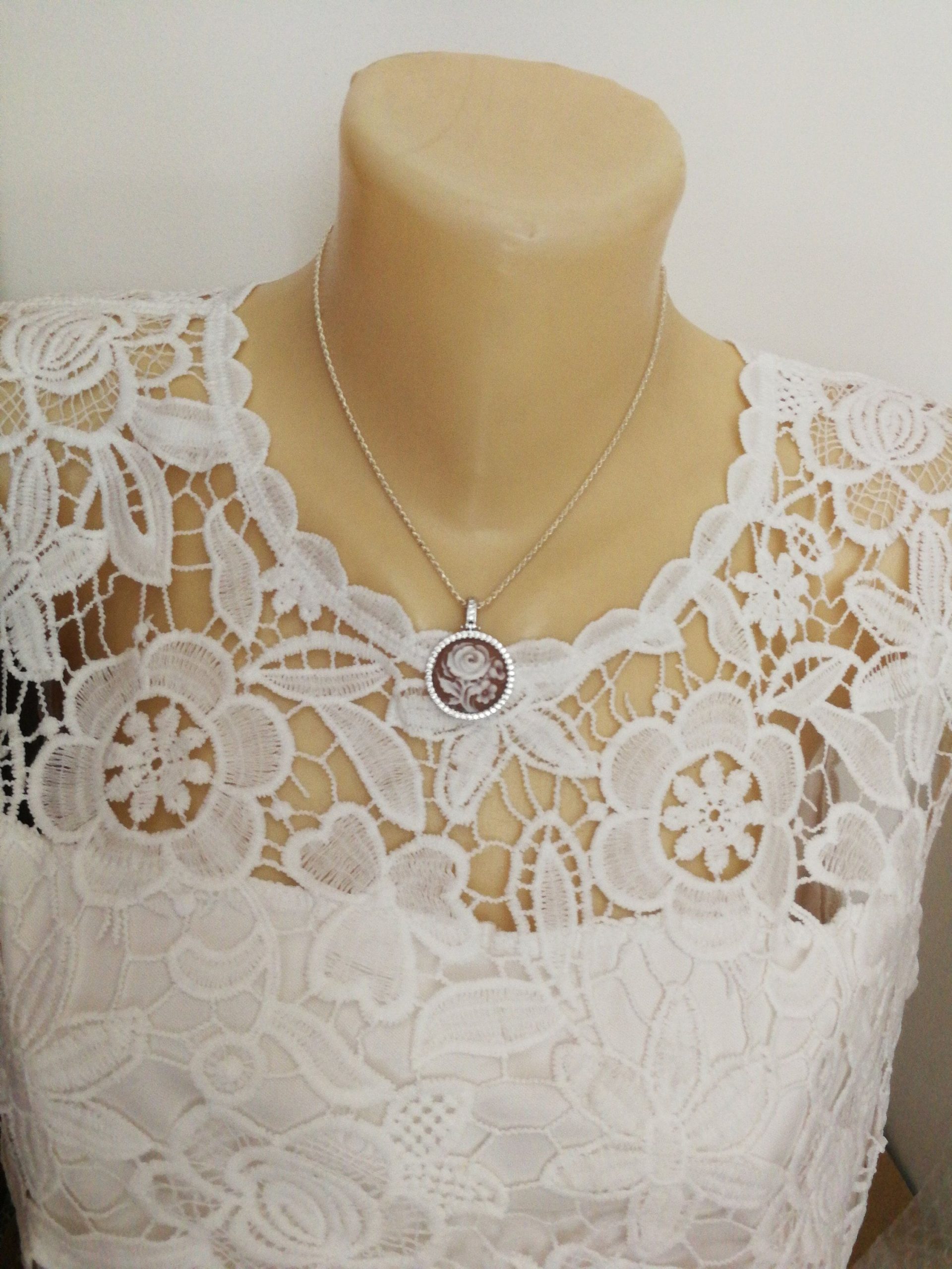 Collana cammeo originale e zirconi bianchi di Torre del Greco.Collana argento.Cammeo sardonico.