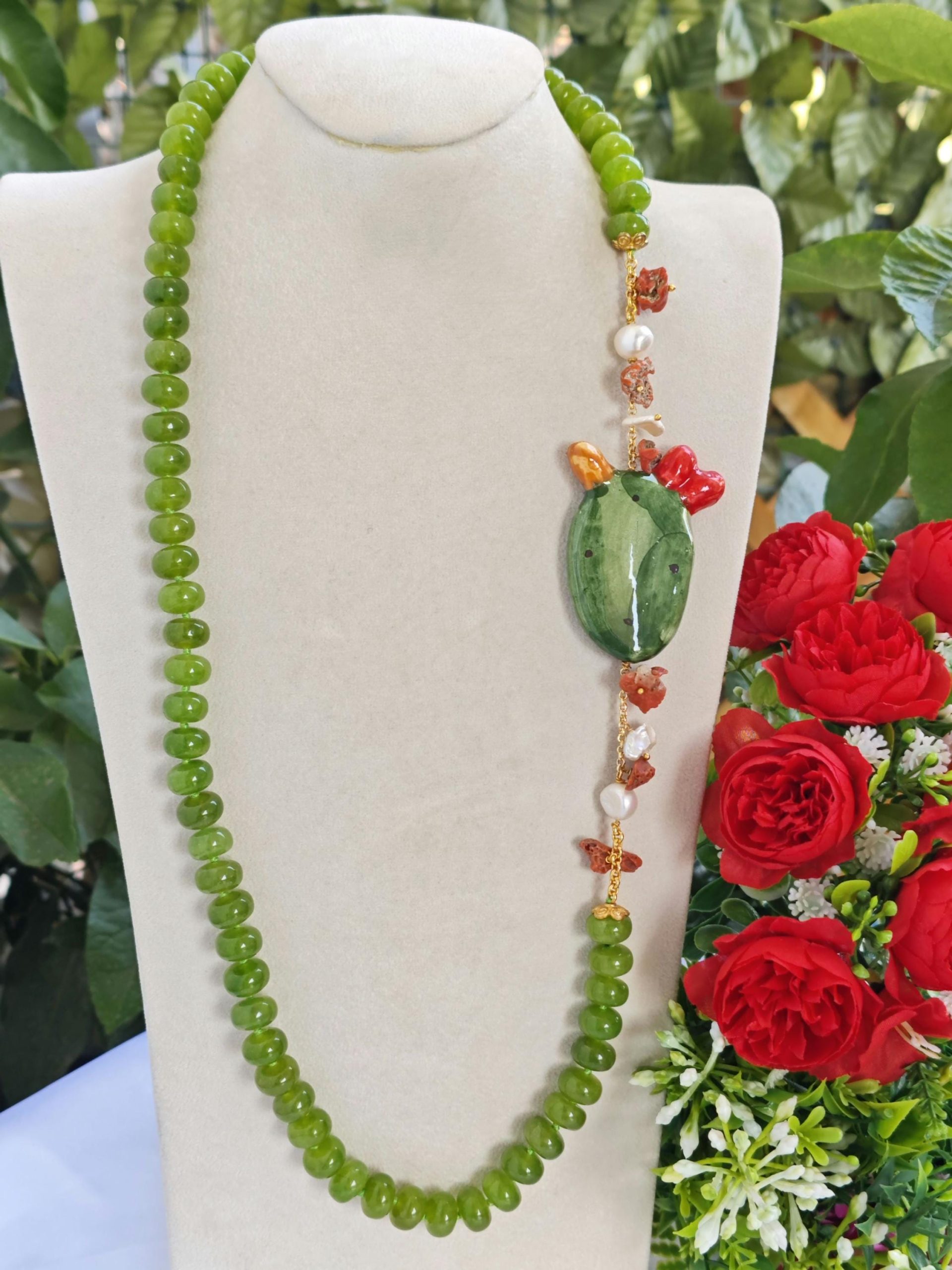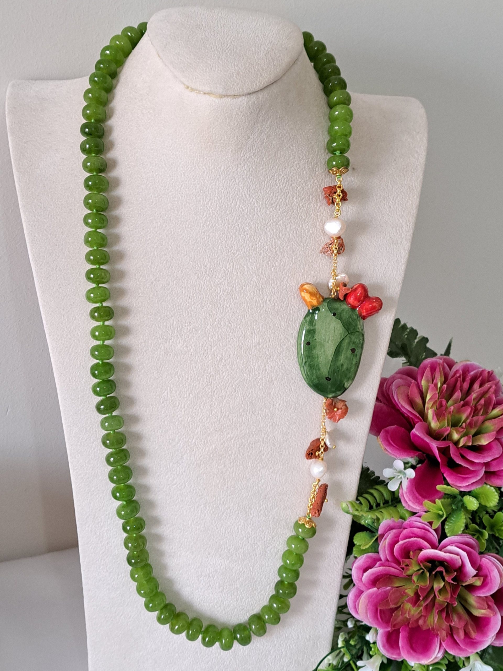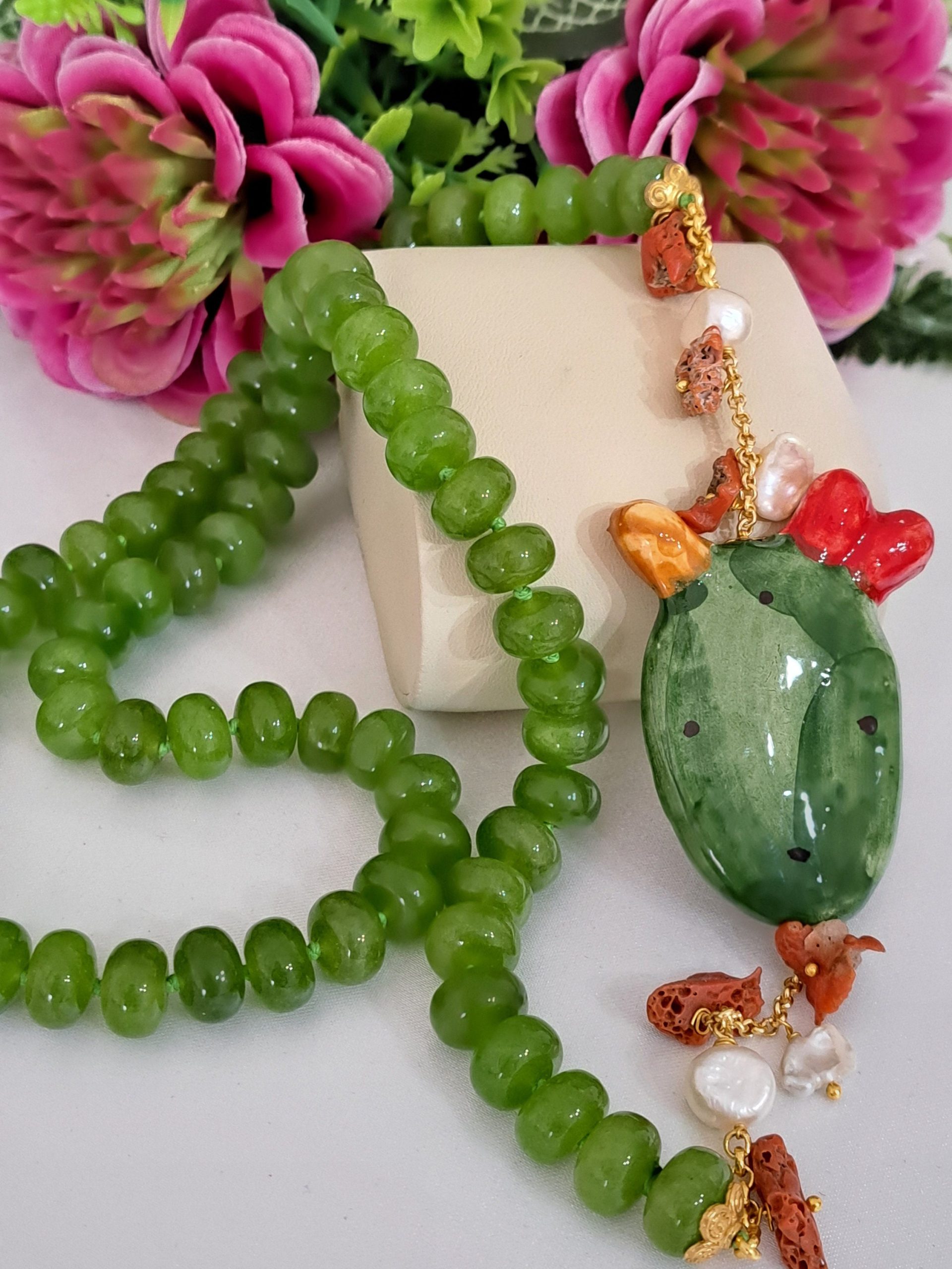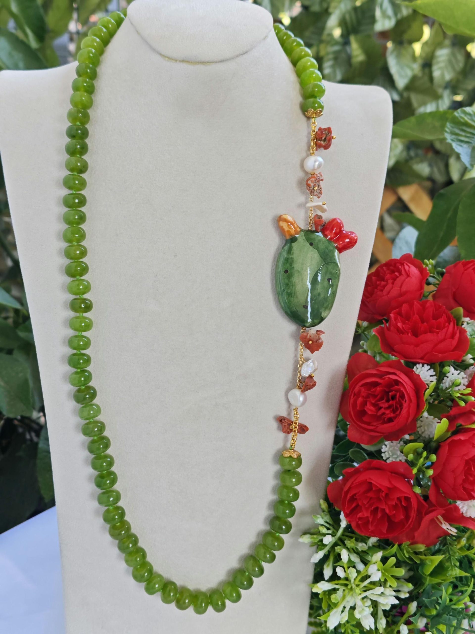 Categoria: Collane Siciliane Tag: ceramica_Caltagirone, collana_cactus, collana_Caltagirone, collana_corallo, collana_lunga, collana_peridoto, collana_perle, collana_pietre_dure, collana_siciliana, collana_verde, corallo_naturale, corallo_rosso, perle_bianche