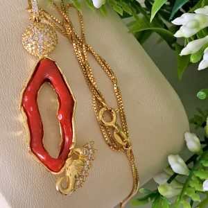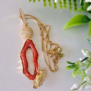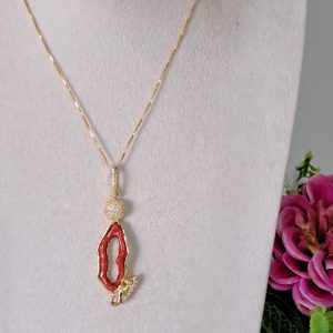 Collana con Pendente corallo rosso mediterraneo in argento 925 placcato oro , gioielli italiani