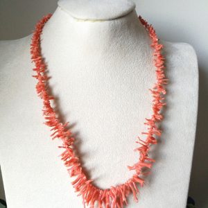 Collana elegante décolleté con rametto corallo rosa naturale del mediterraneo a rametto, molto pregiato. Il corallo rosa è molto più raro di quello rosso e quindi più esclusivo.