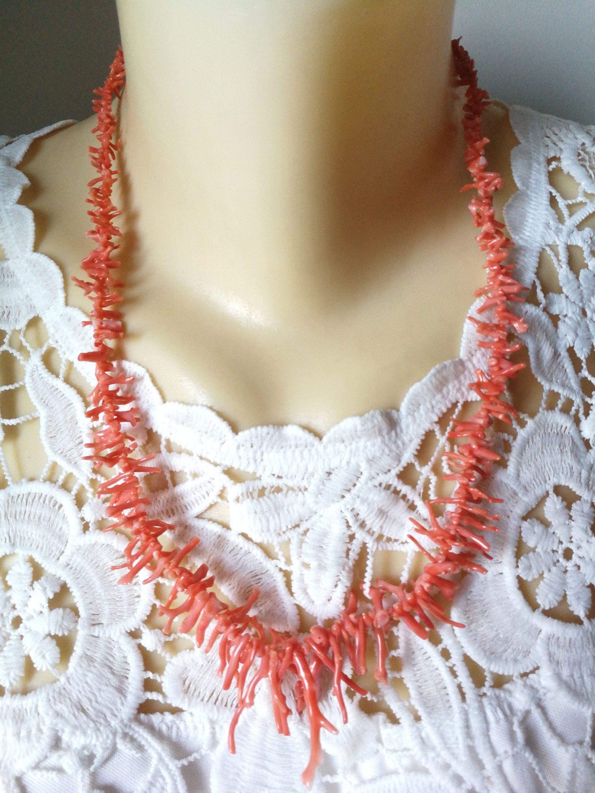 Collana corallo rosa naturale, collana rametti corallo