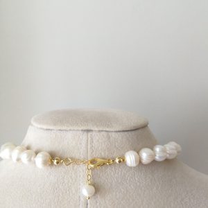 Collana girocollo perle barocche bianche con chiusura in argento 925 , gioielli italiani