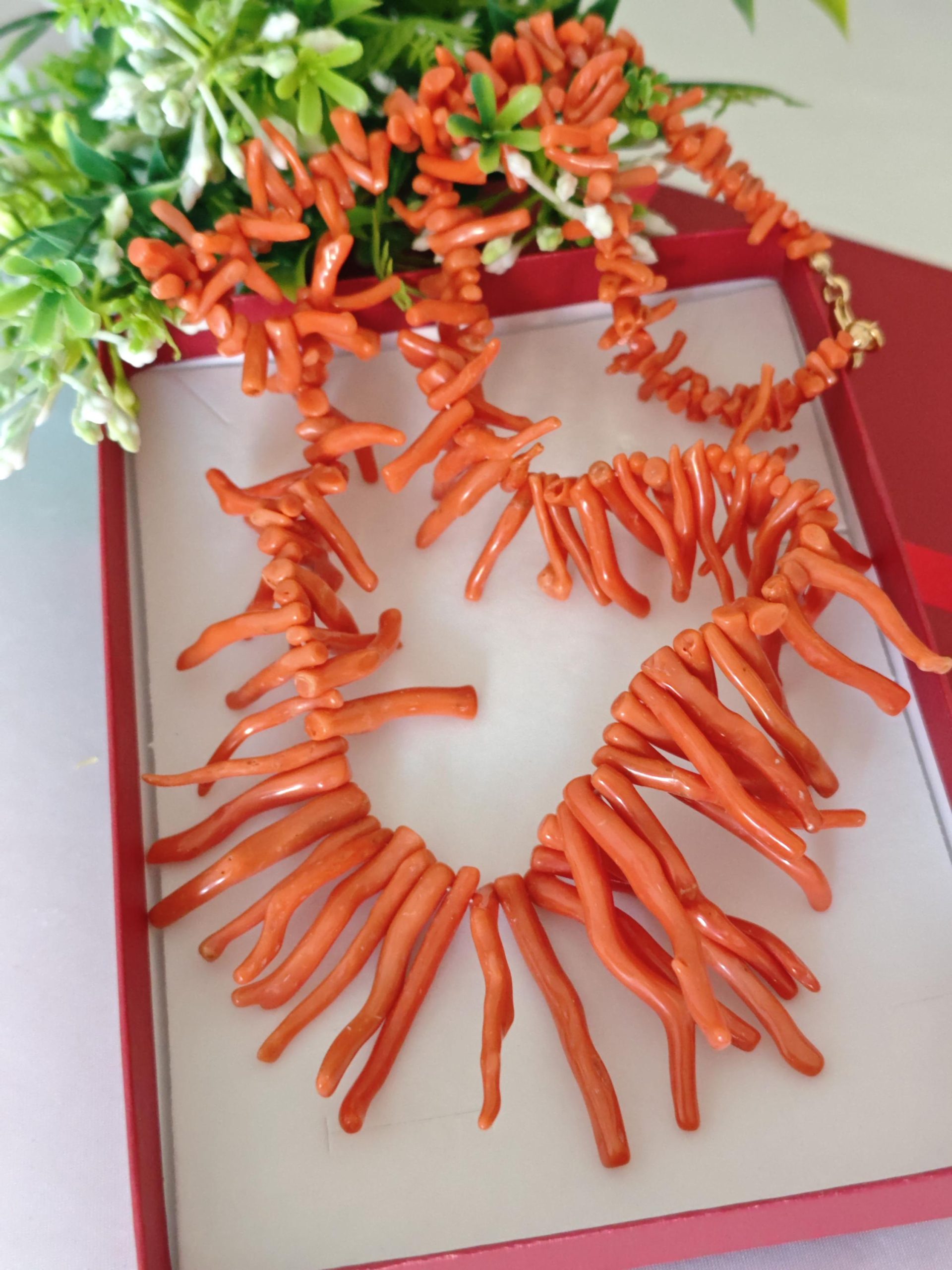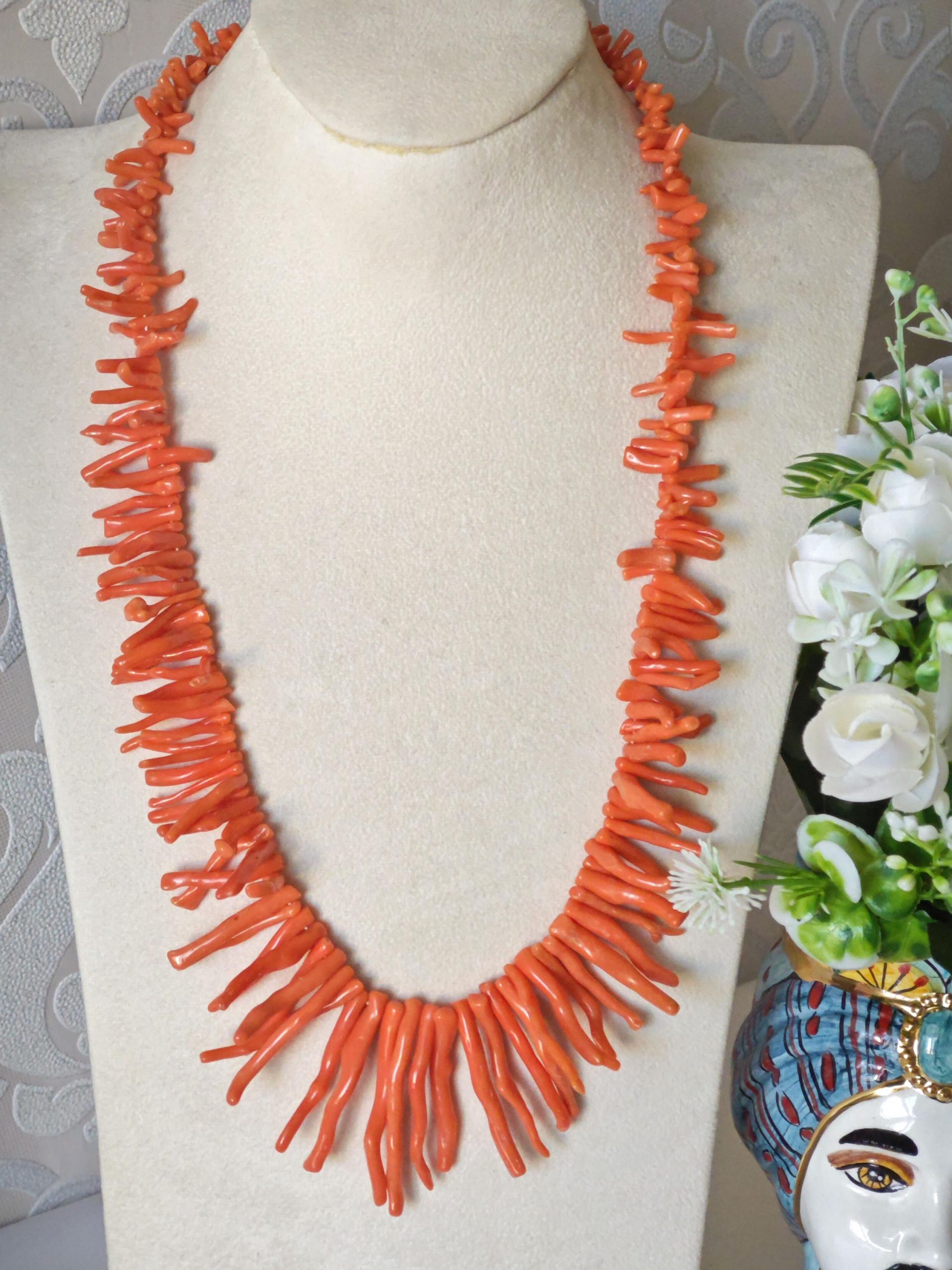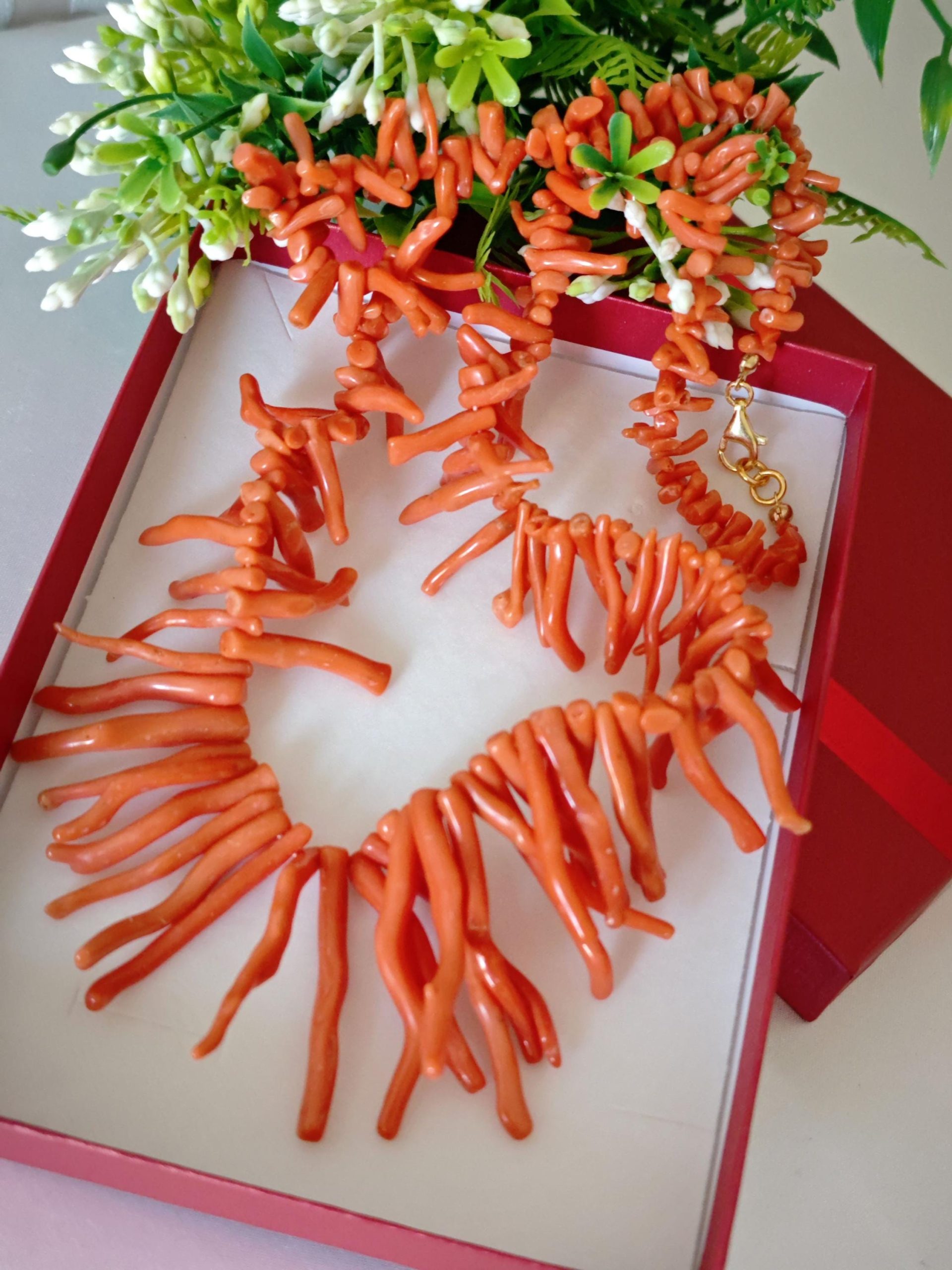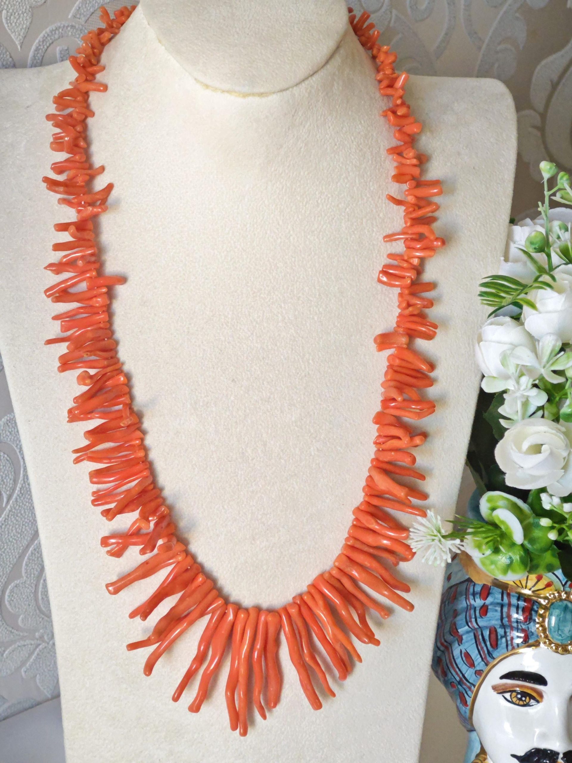 Collana maxi con rametti corallo di Sciacca rosso arancione.