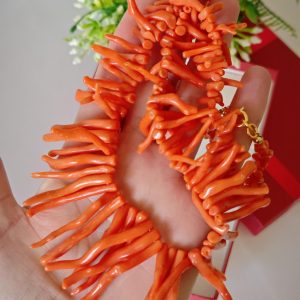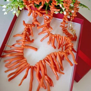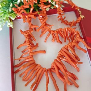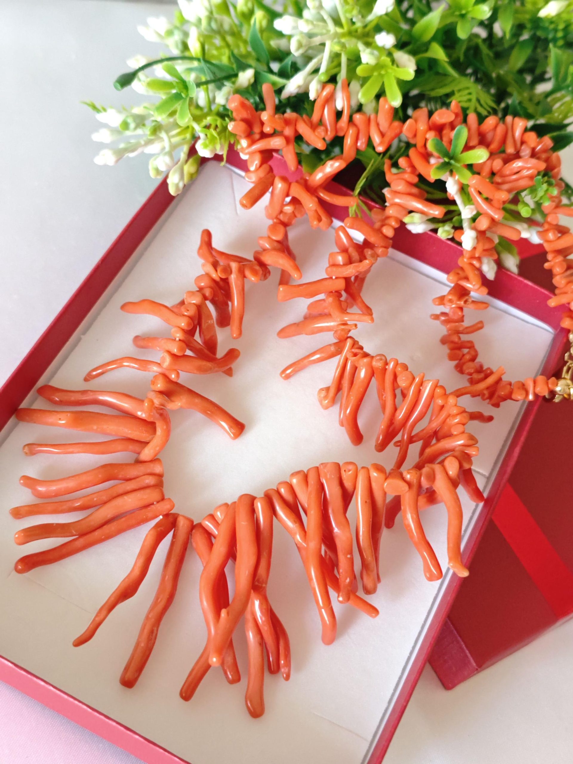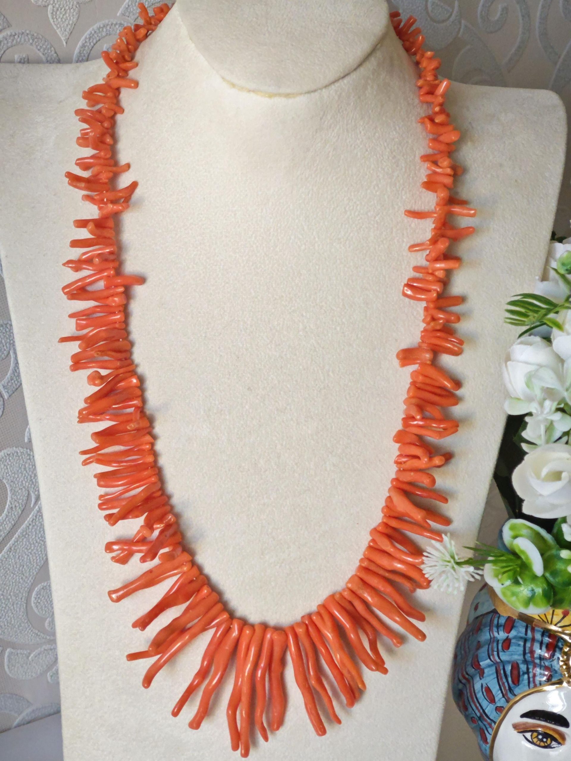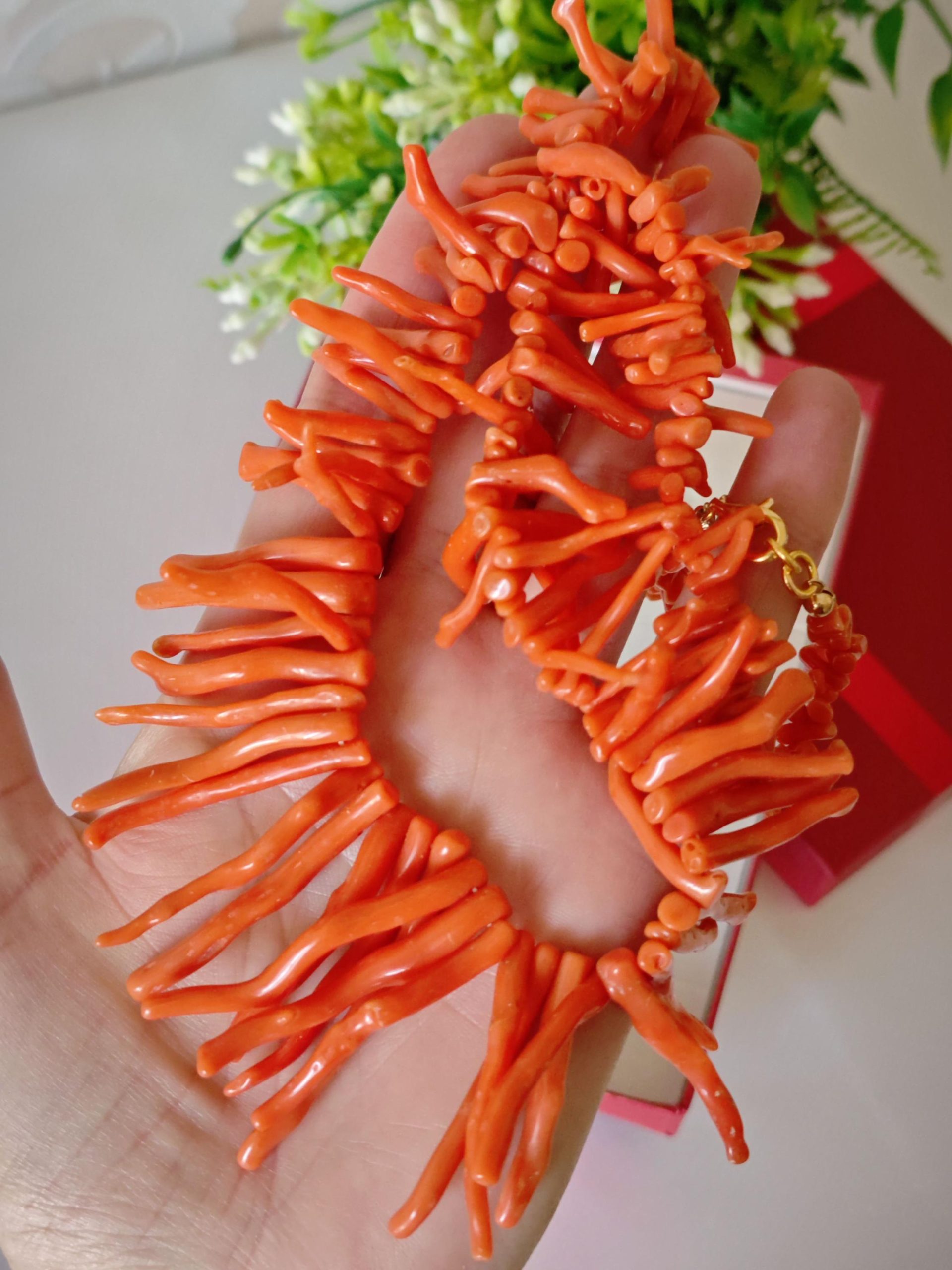 Collana maxi con rametti corallo di Sciacca rosso arancione.