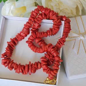 Collana corallo rosso mediterraneo con chiusura argento 925 placcato oro, gioielli italiani