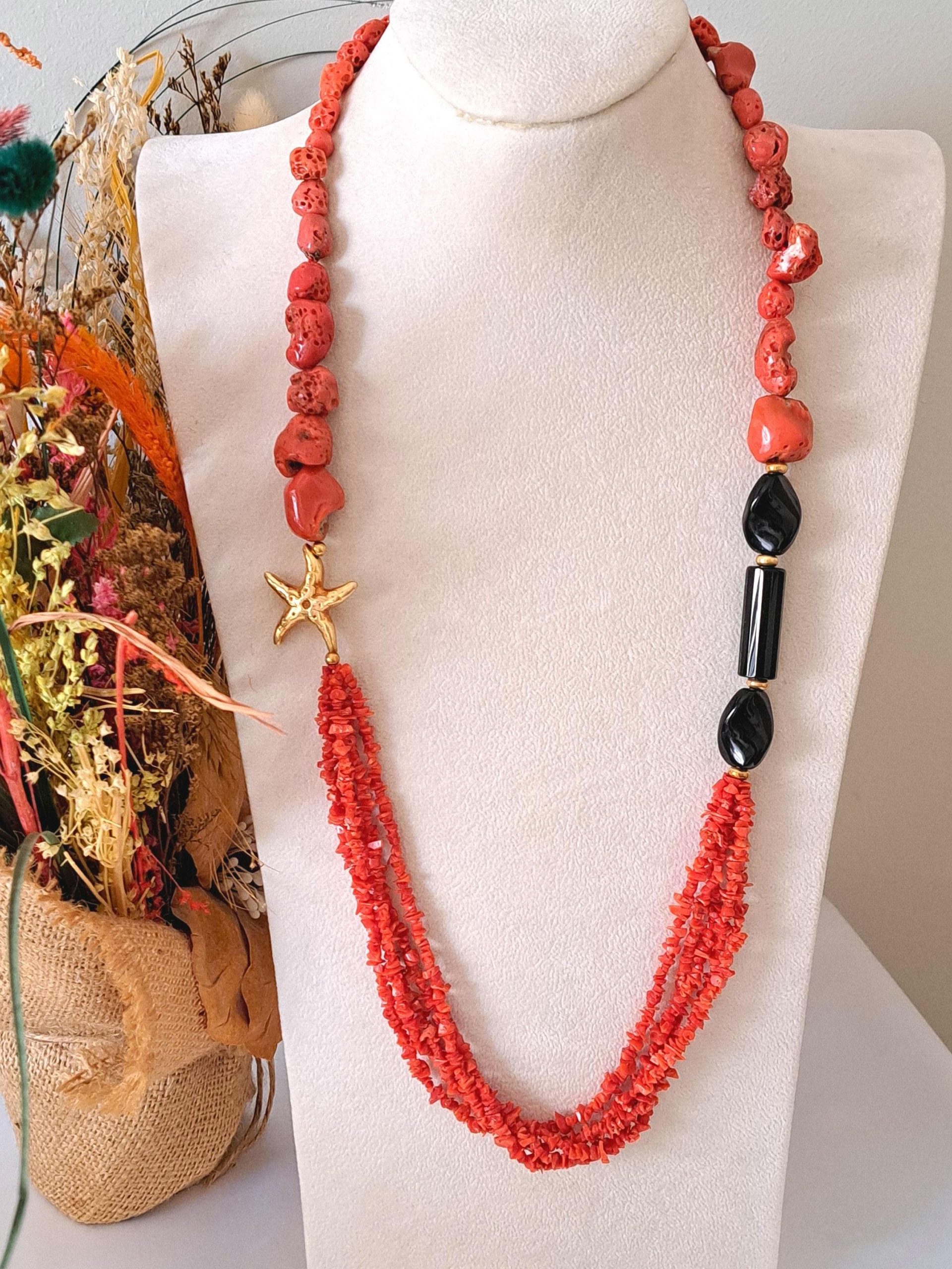 Categoria: Collane Tag: collana_5_fili, collana_corallo, collana_estate, collana_maxi, collana_multifilo, collana_onice, collana_pietre, collana_stella, corallo_mediterraneo, corallo_naturale, corallo_rosso, gioielli_italiani, stella_marina