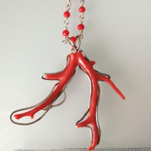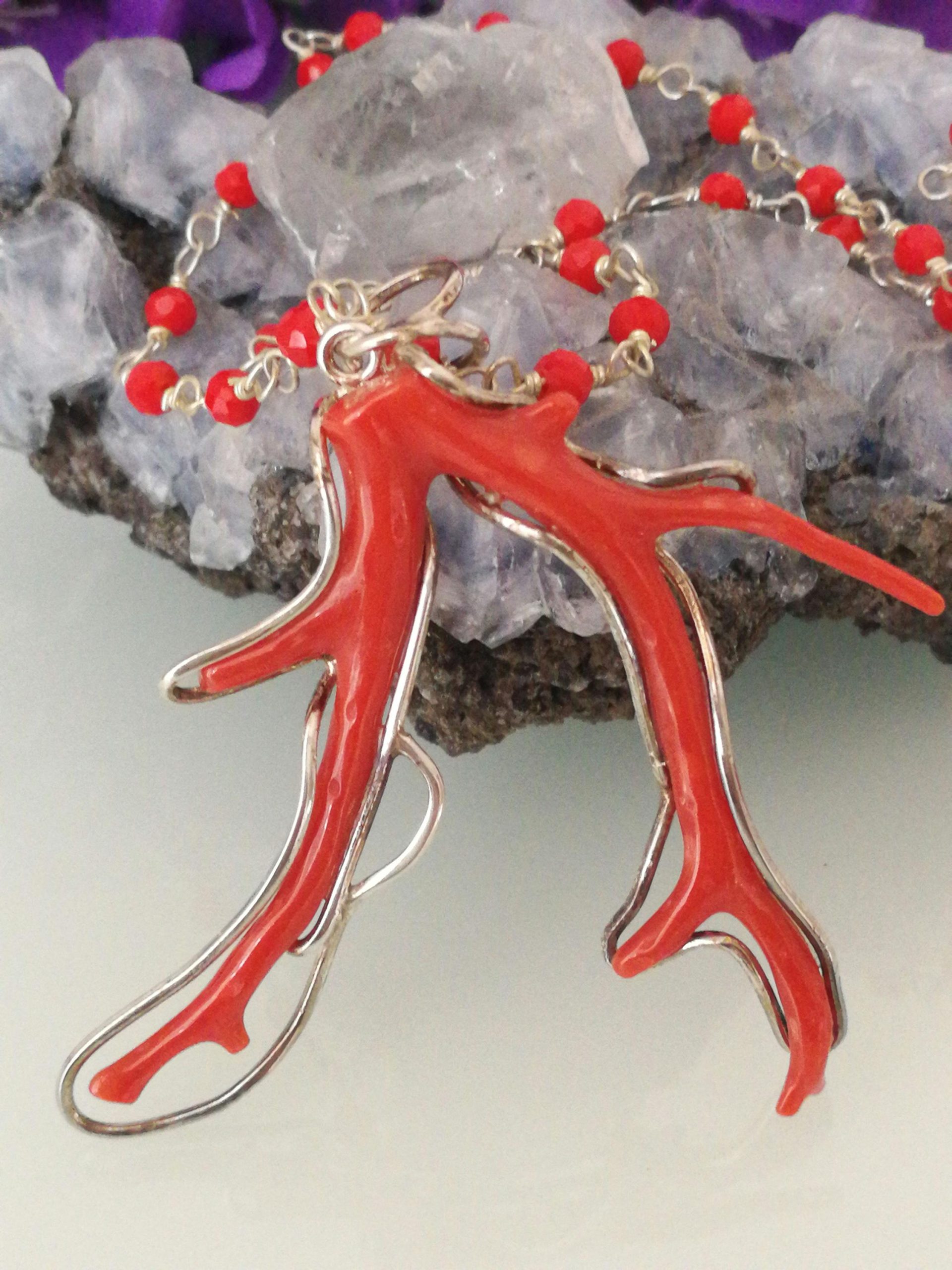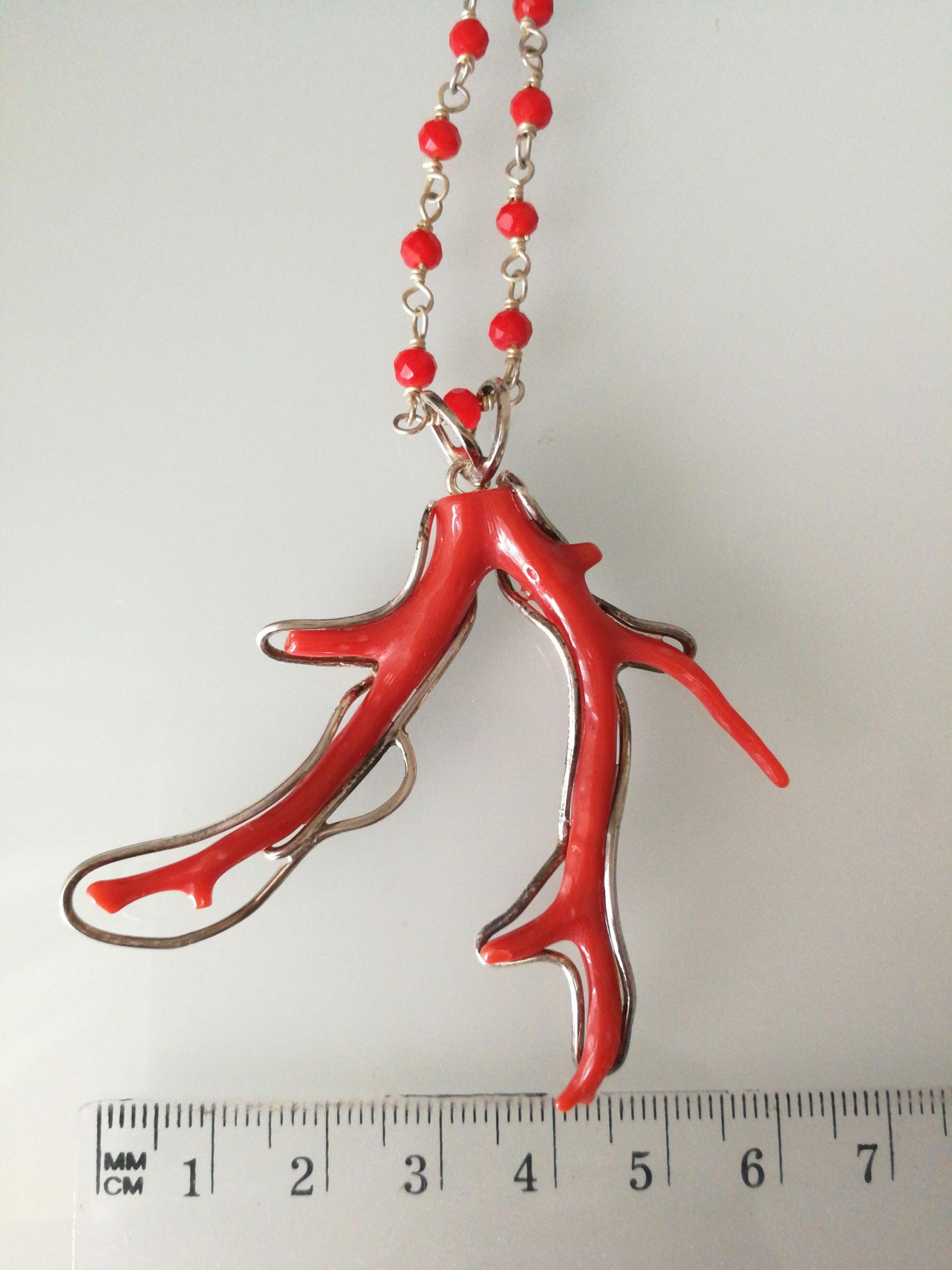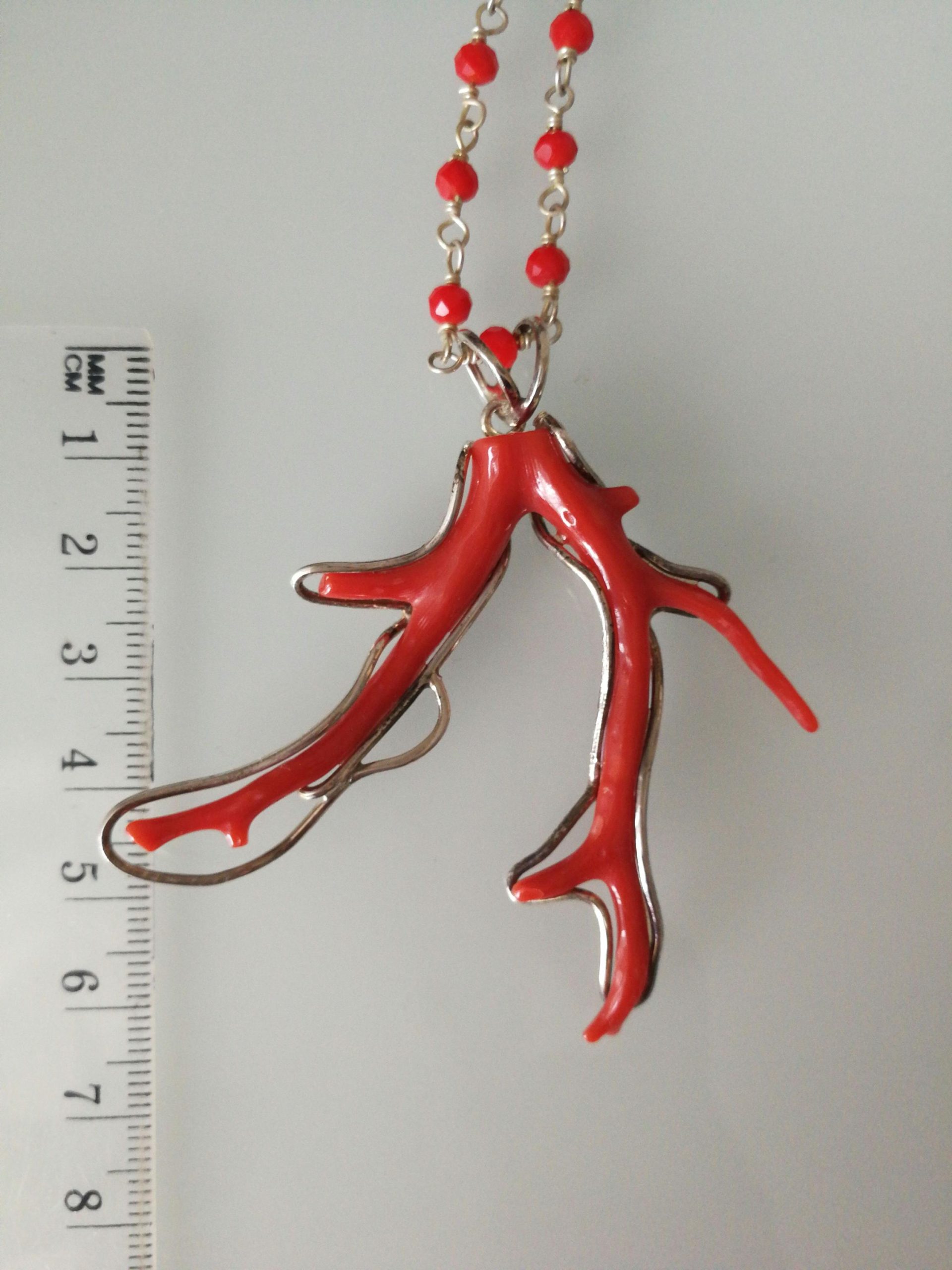 Collana corallo rosso naturale del mediterraneo. Ciondolo ramo corallo rosso naturale del mediterraneo. Ciondolo argento