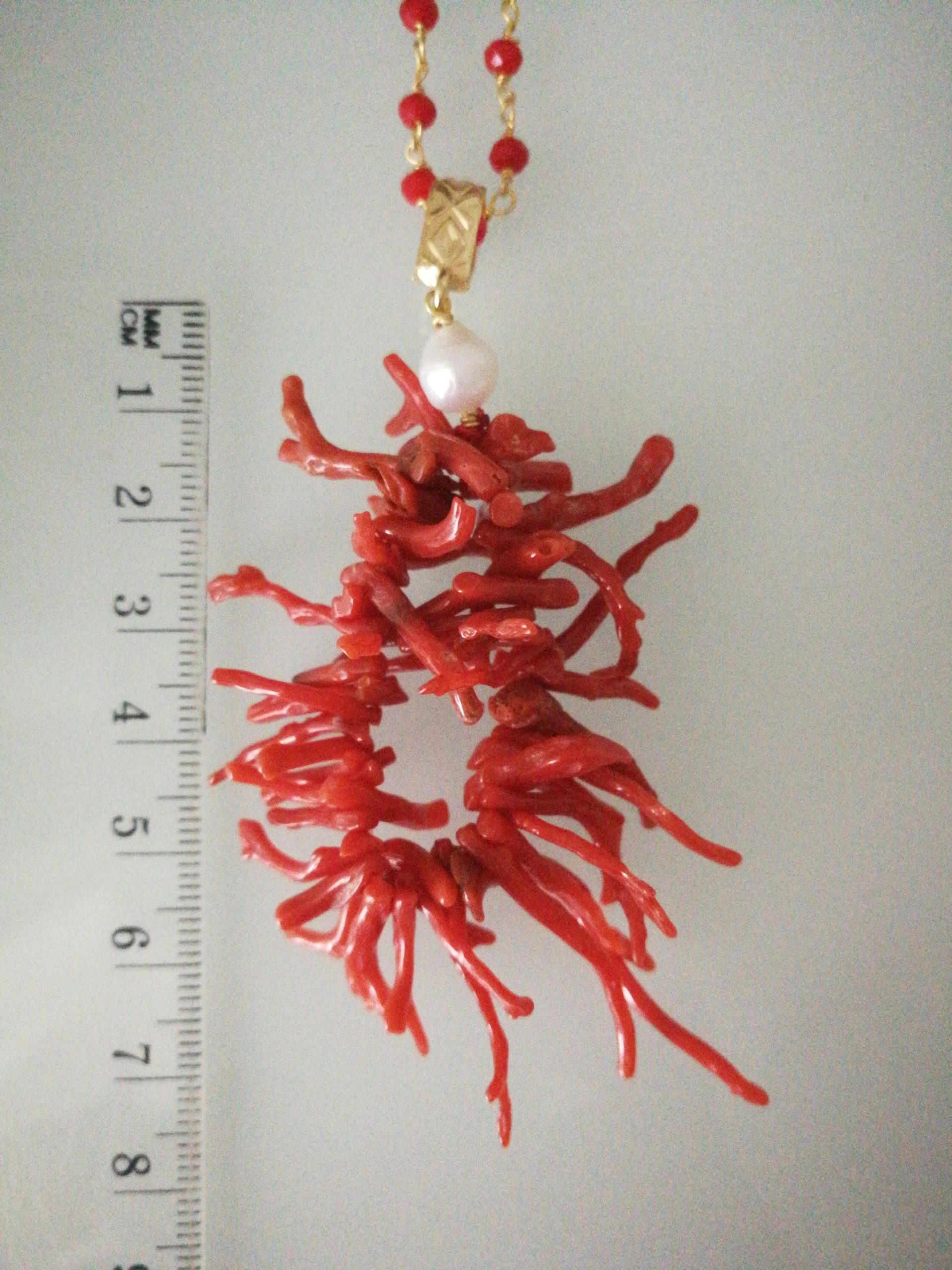 Collana corallo rosso naturale del mediterraneo. Collana ciondolo rametto corallo . Corallo vero.