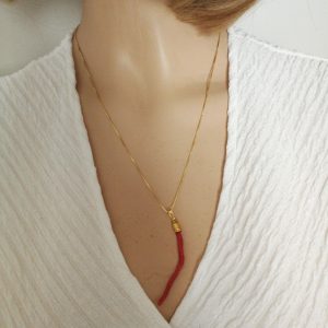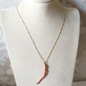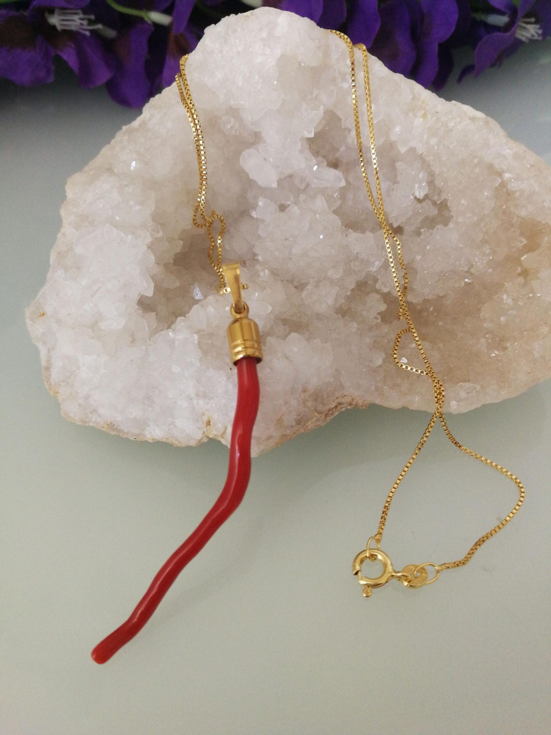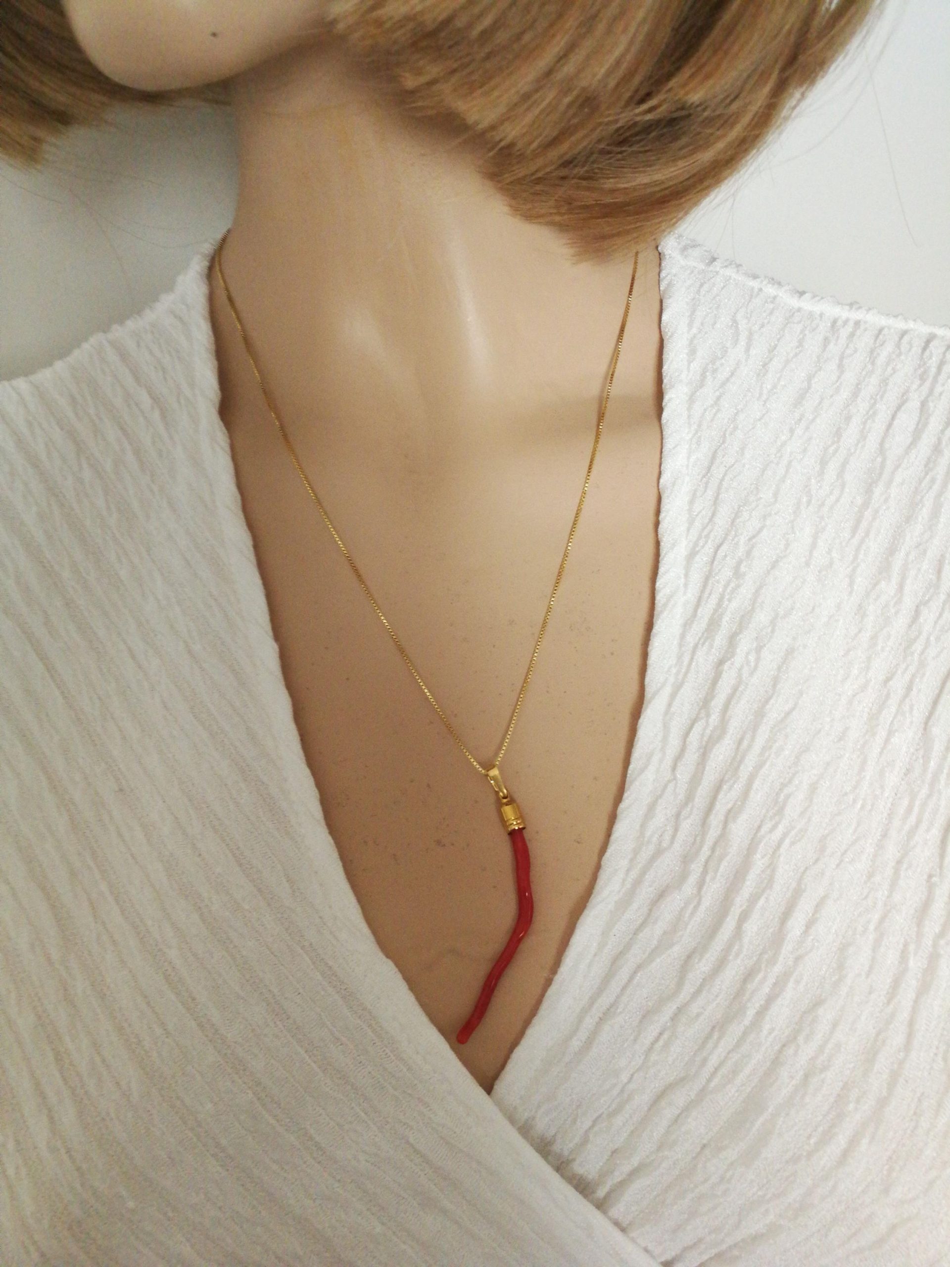 Collana con Pendente corallo rosso mediterraneo in argento 925 placcato oro , gioielli italiani