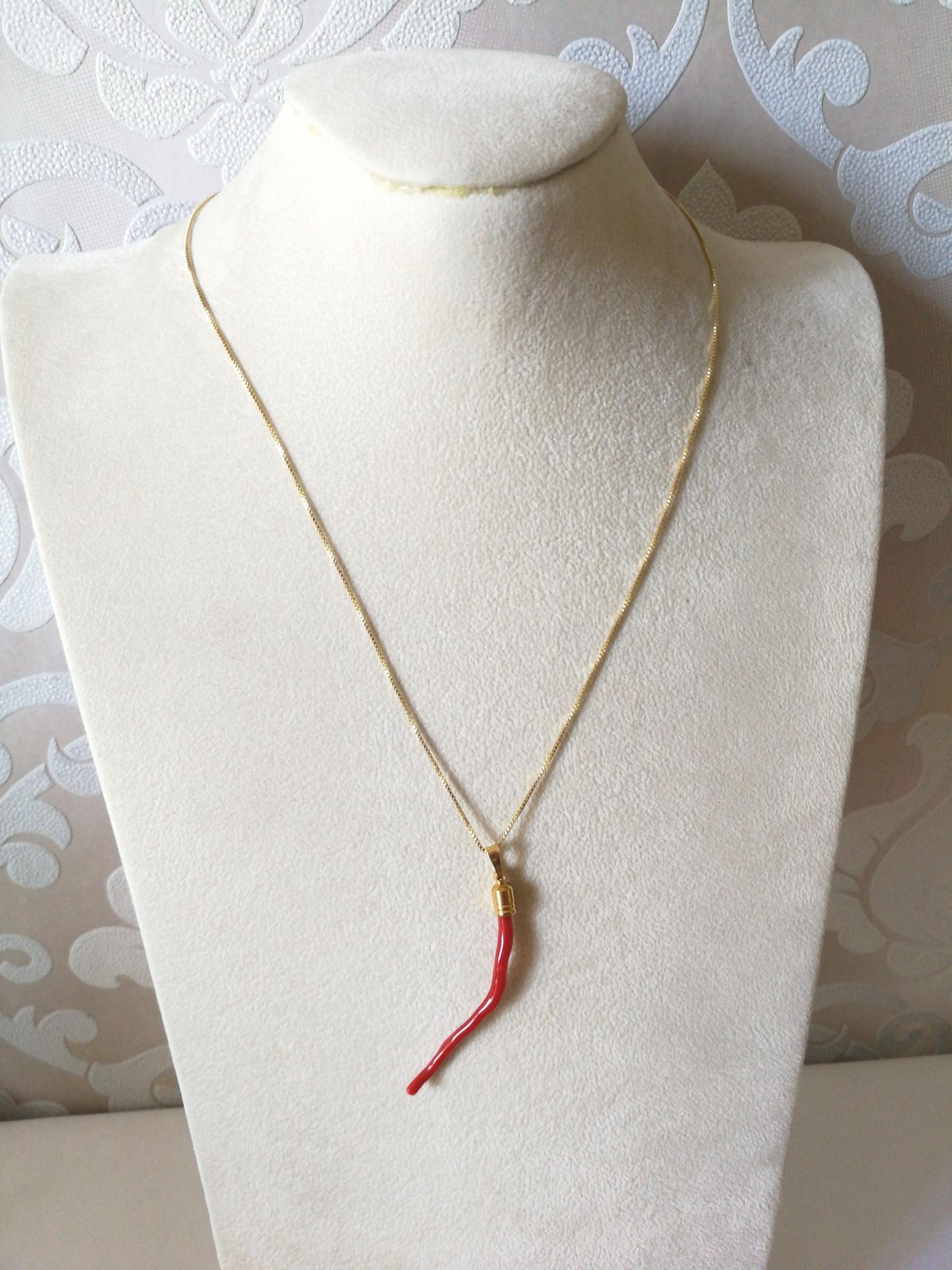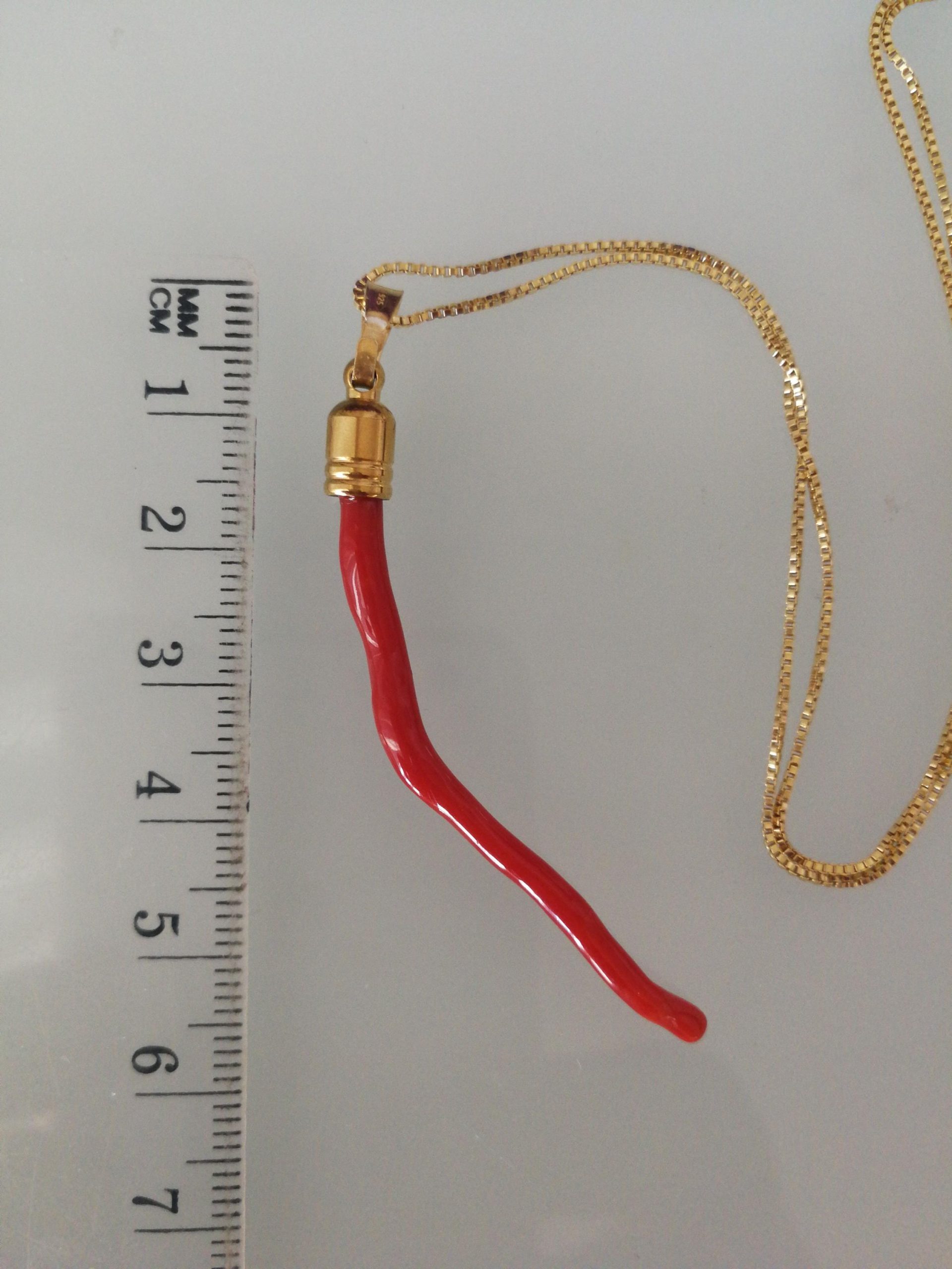 Collana elegante con ciondolo con maxi ramo corallo rosso del mediterraneo vero , catenina veneziana in argento 925 placcata oro Misura ramo di corallo 6 cm. Misura lunghezza collana 50 cm.Corallo vero.