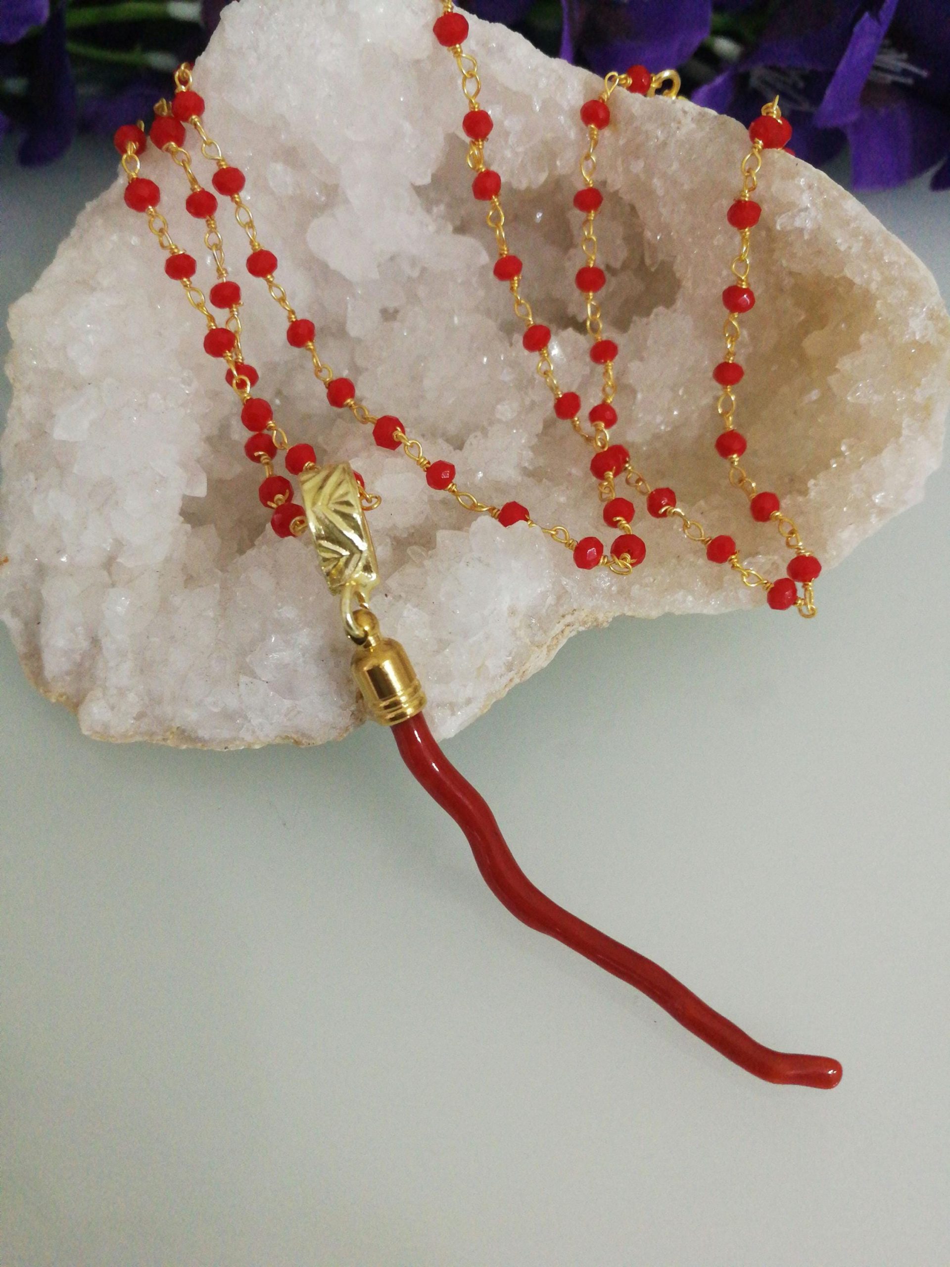 Collana corallo rosso naturale del mediterraneo. Collana ciondolo ramo rosso. Corallo vero.