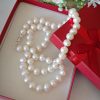 Collana perle bianche con argento 925 con zirconi , collana girocollo, collana sposa