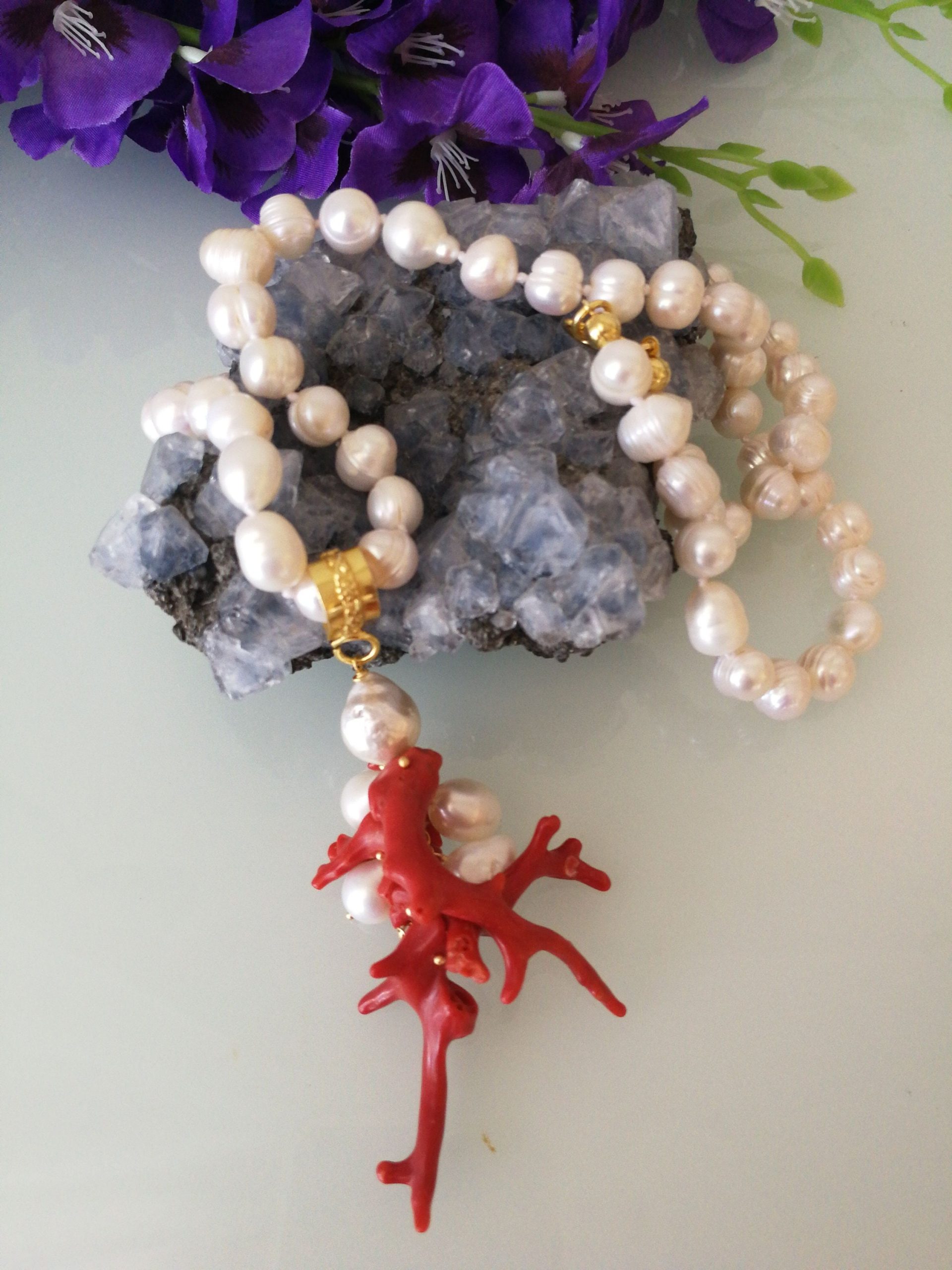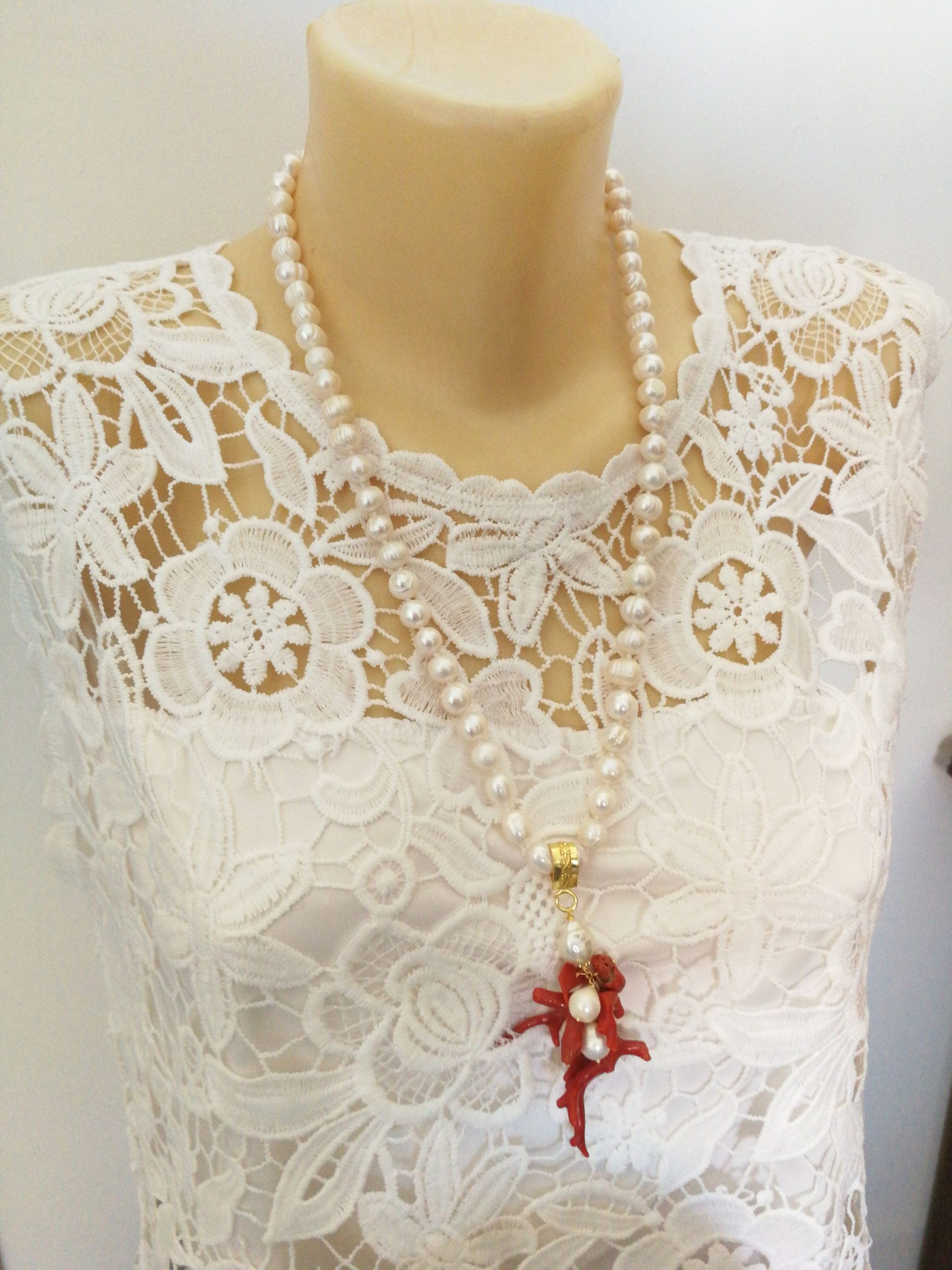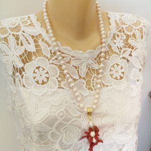 Categoria: Collane Perle Tag: Collana corallo, Collana maxi, Collana perle, corallo naturale, Corallo rosso, Fatta a mano, perle bianche, perle naturali