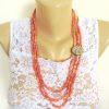 Collana maxi corallo rosso bambù con cristalli neri , collana 4 fili , gioielli italiani