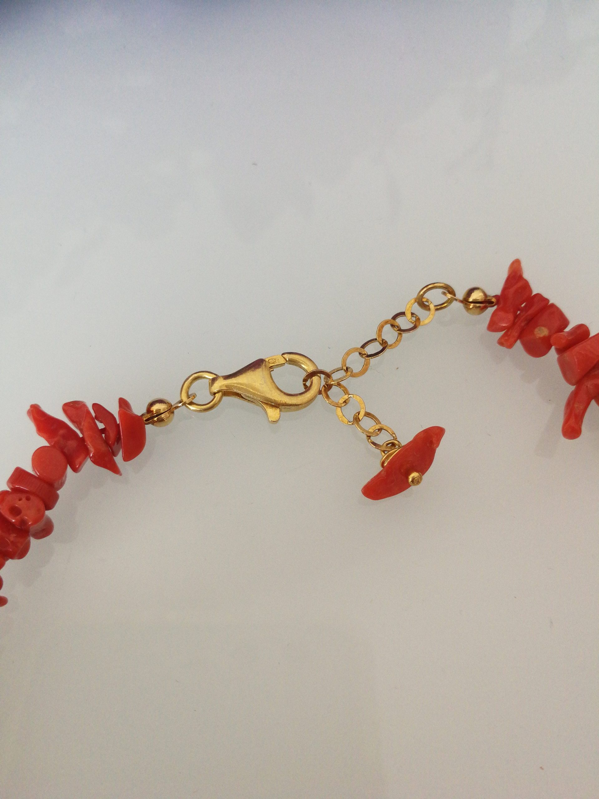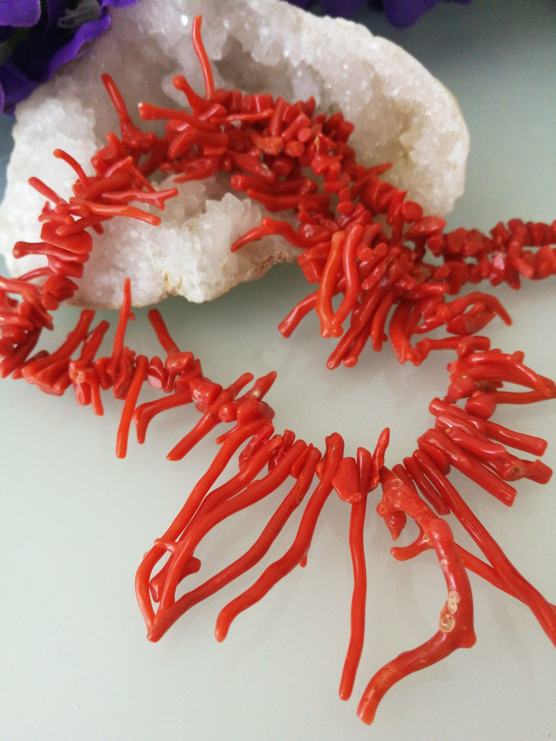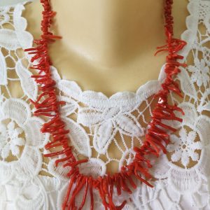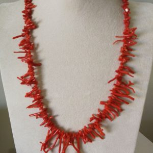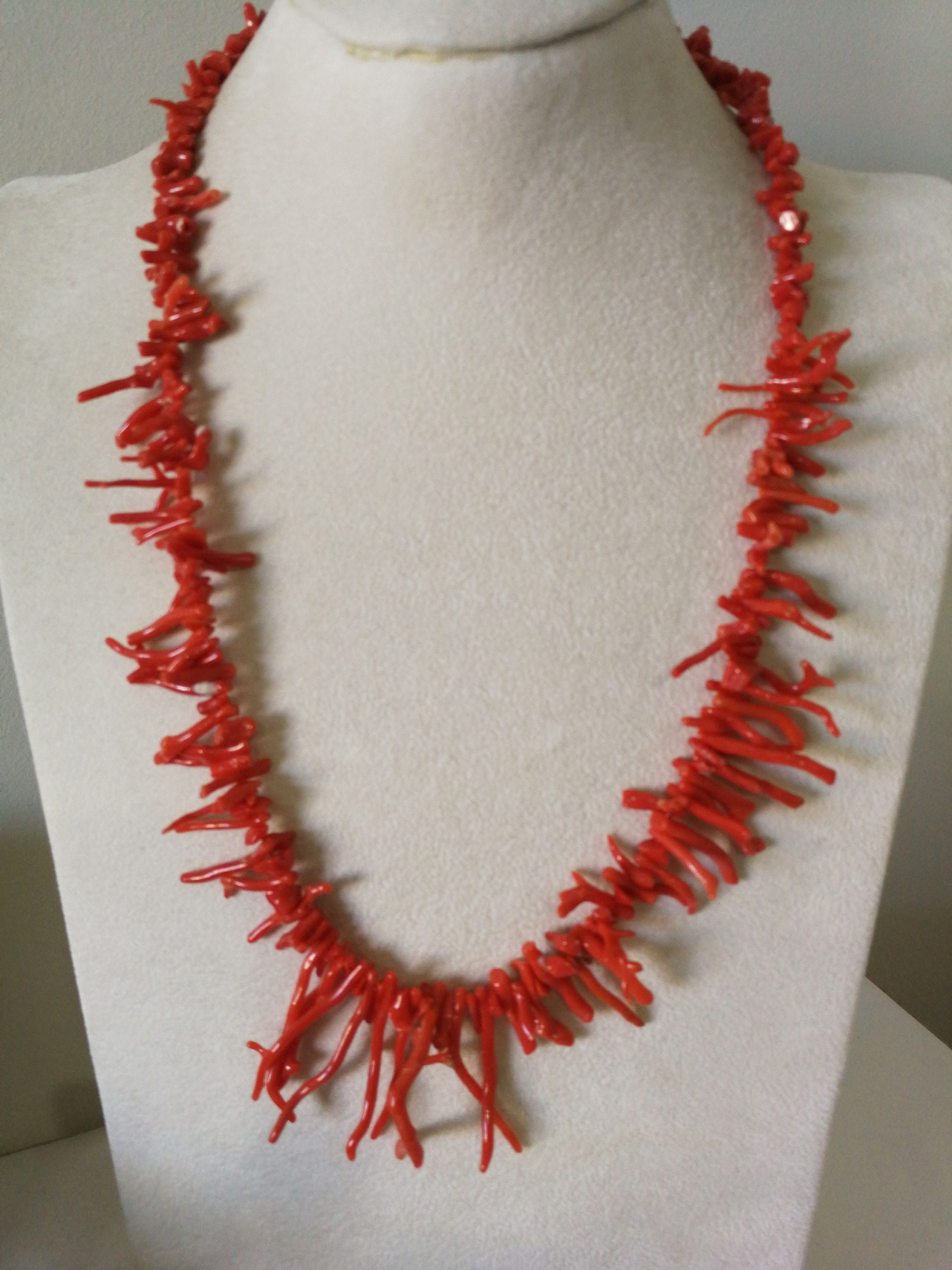 Collana corallo rosso naturale di Sciacca Sicilia. Collana rametto corallo naturale. Collana argento.
