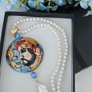 Collana ceramica di  Caltagirone con perle bianche , collana siciliana girocollo