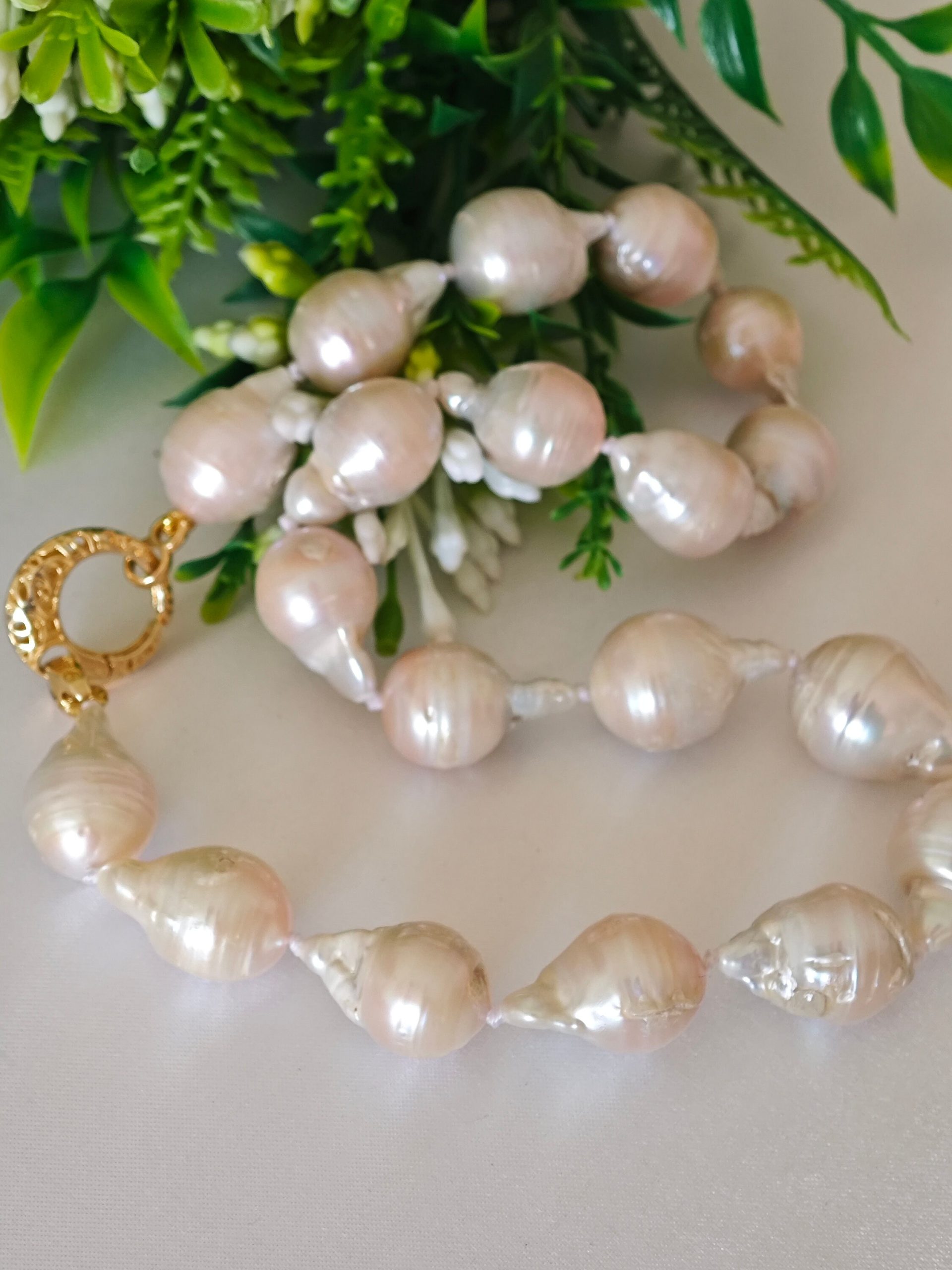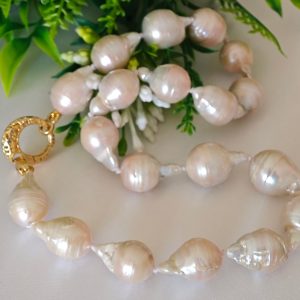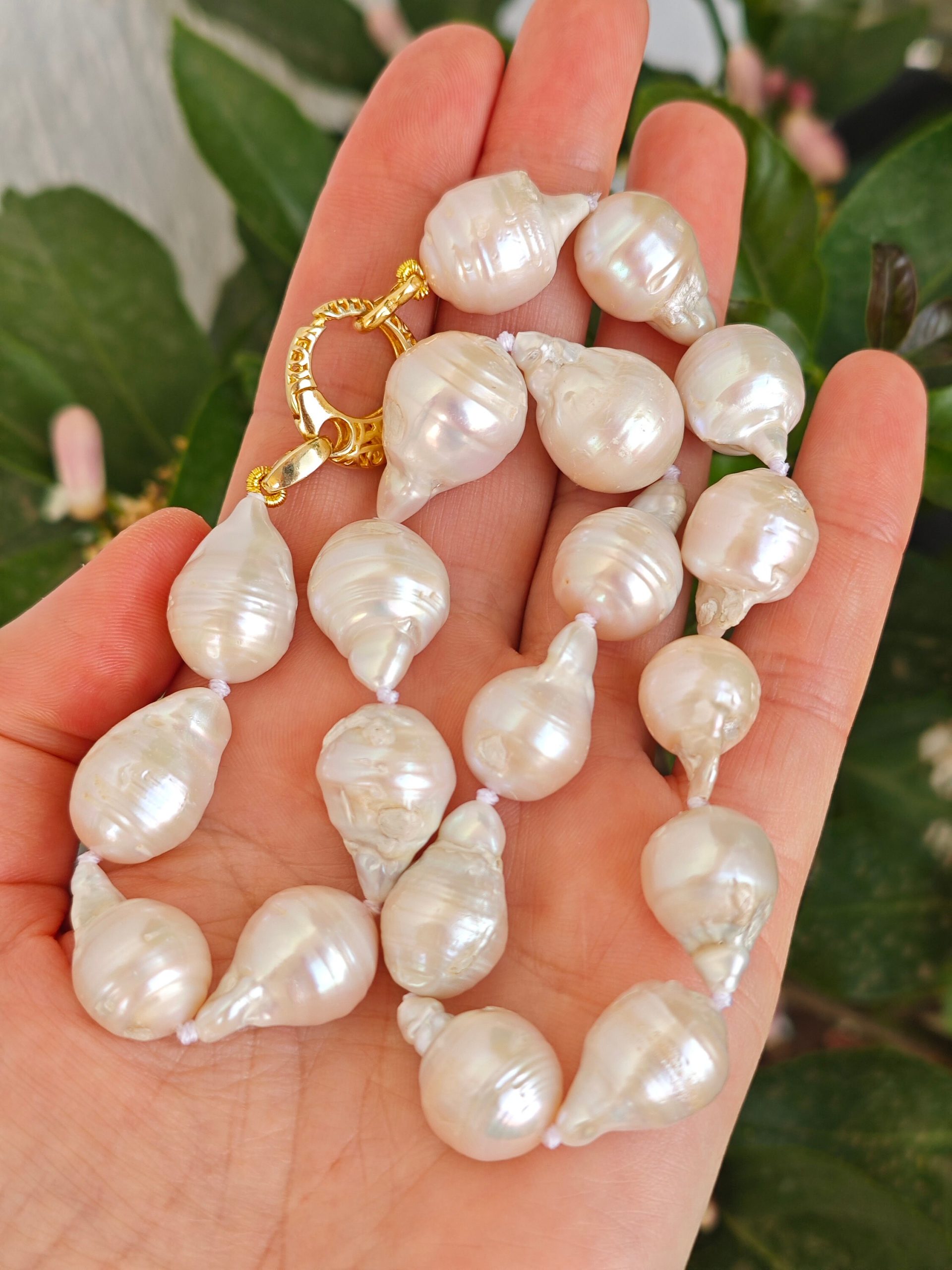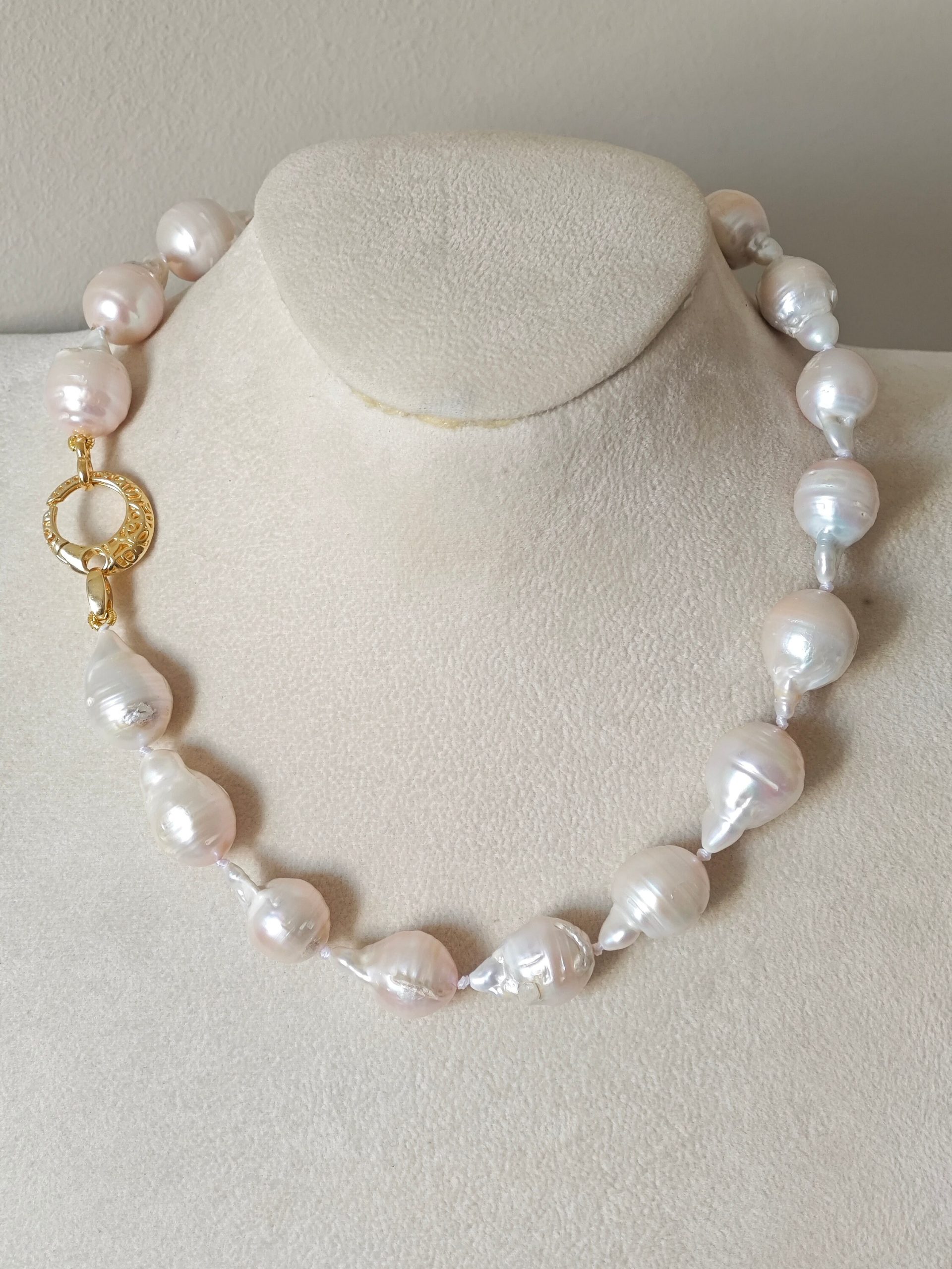 Collana girocollo annodata a mano con perle barocche bianche grandi .