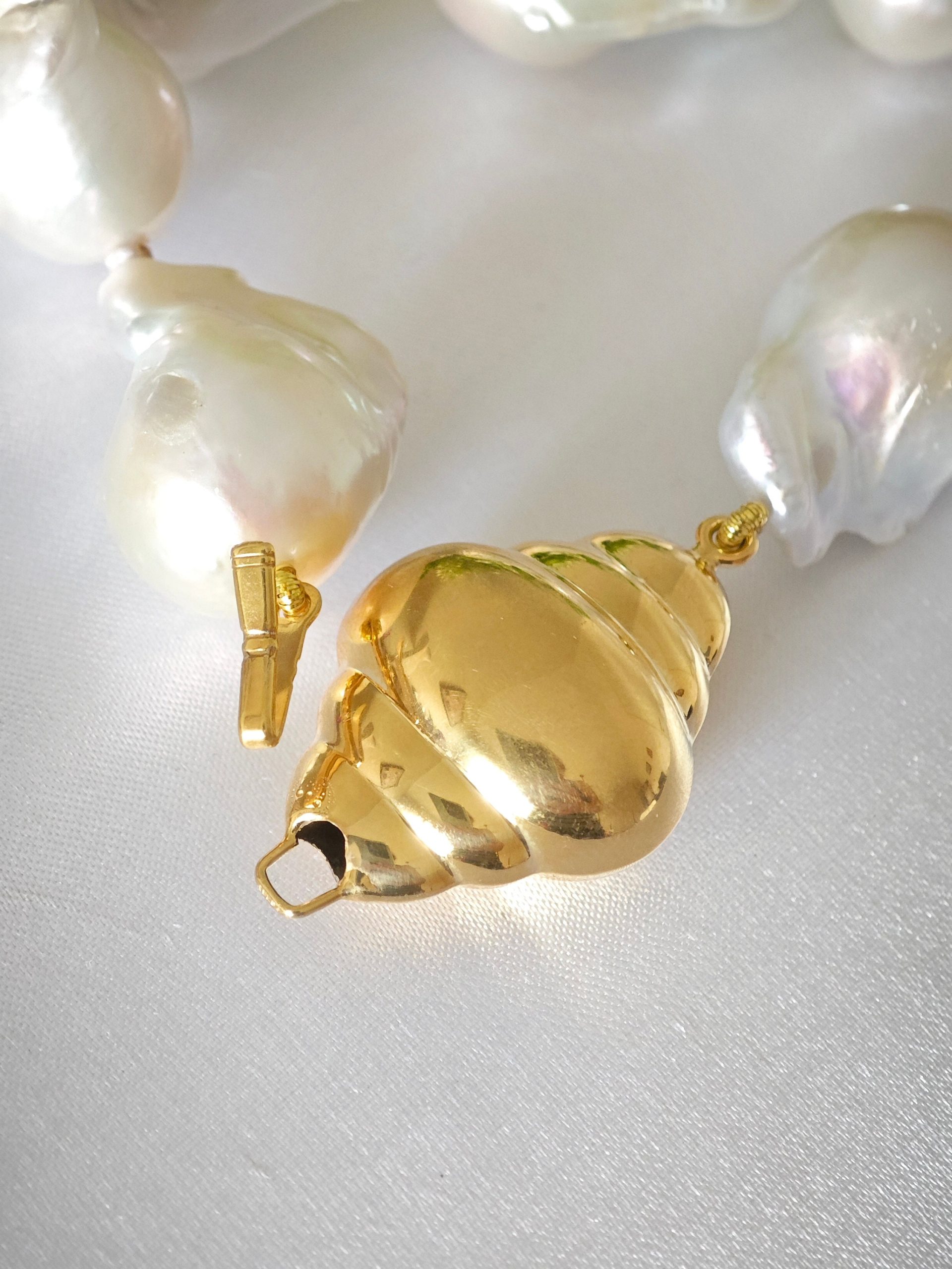 Chiusura a gancetto a forma di conchiglia in argento 925 placcato oro.