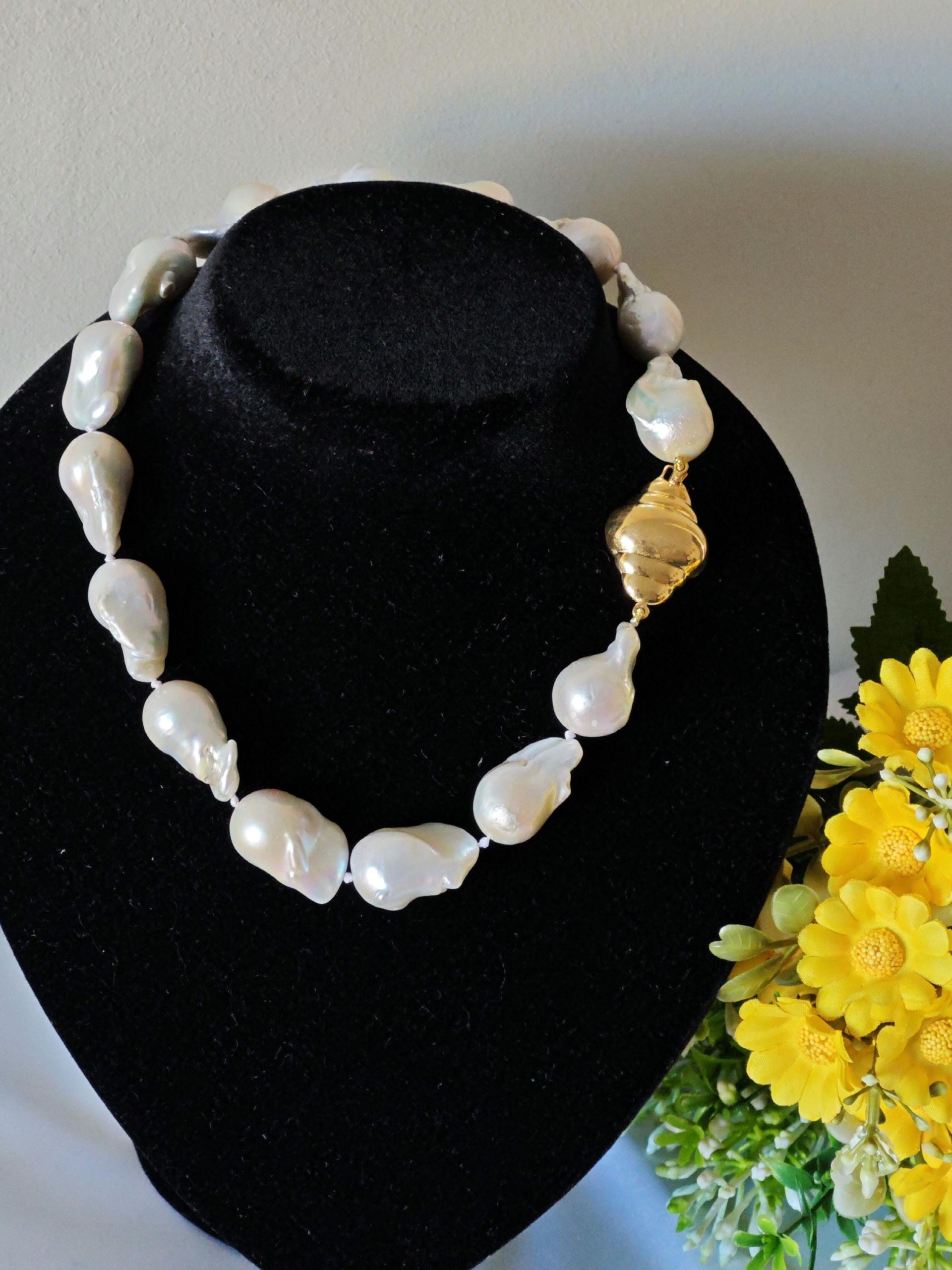 Collana girocollo annodata a mano con perle barocche bianche grandi .