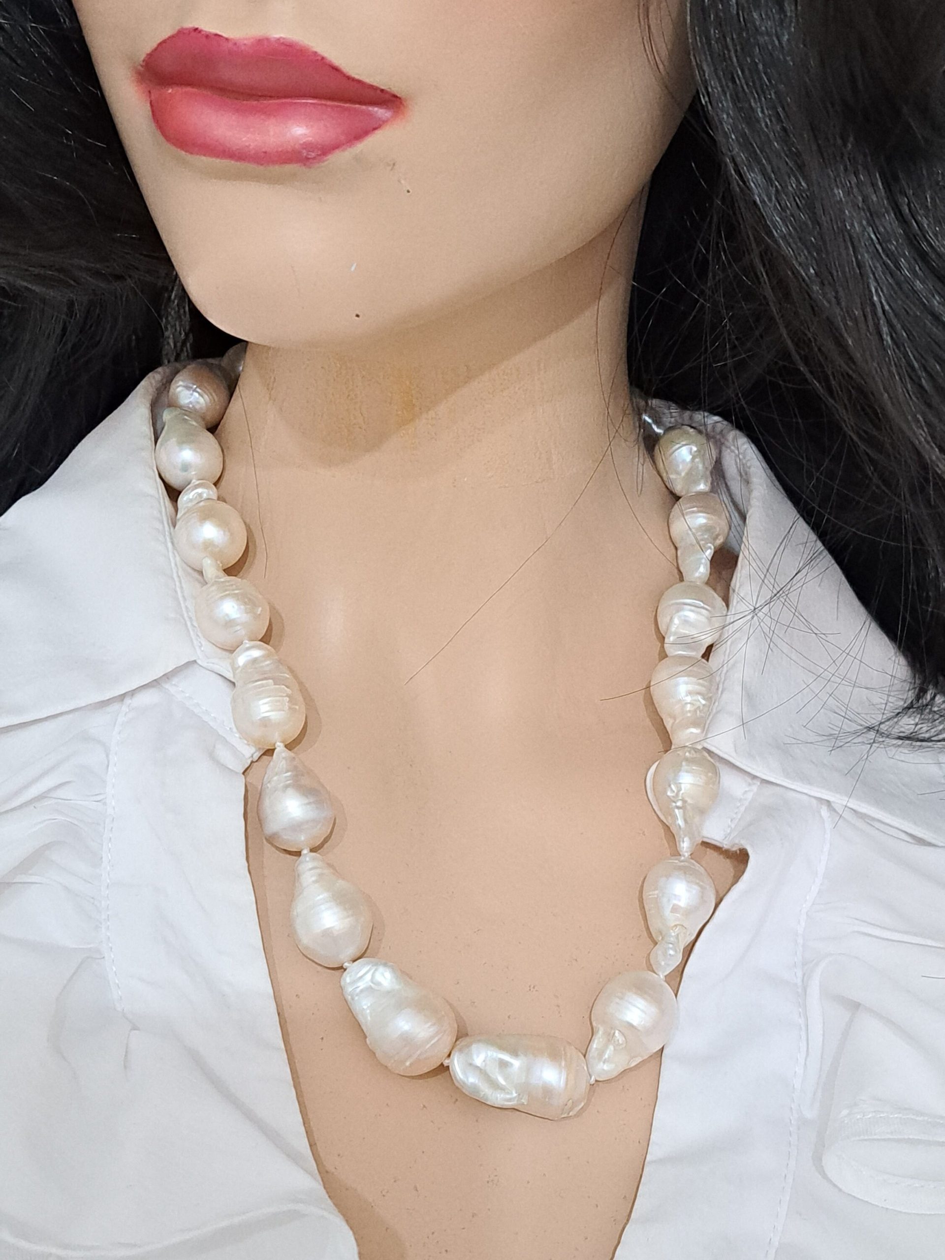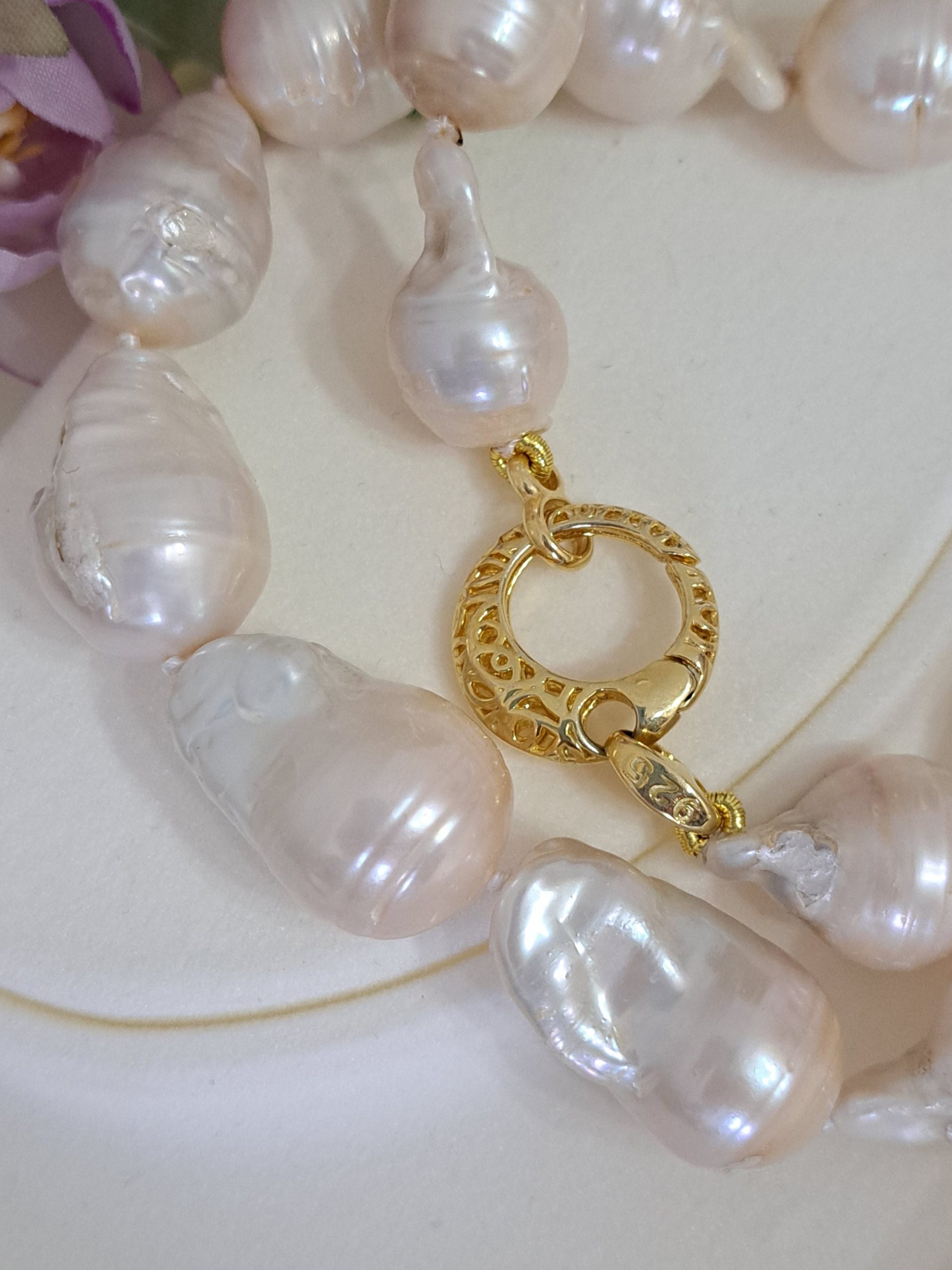 Collana girocollo annodata a mano con perle barocche bianche grandi .