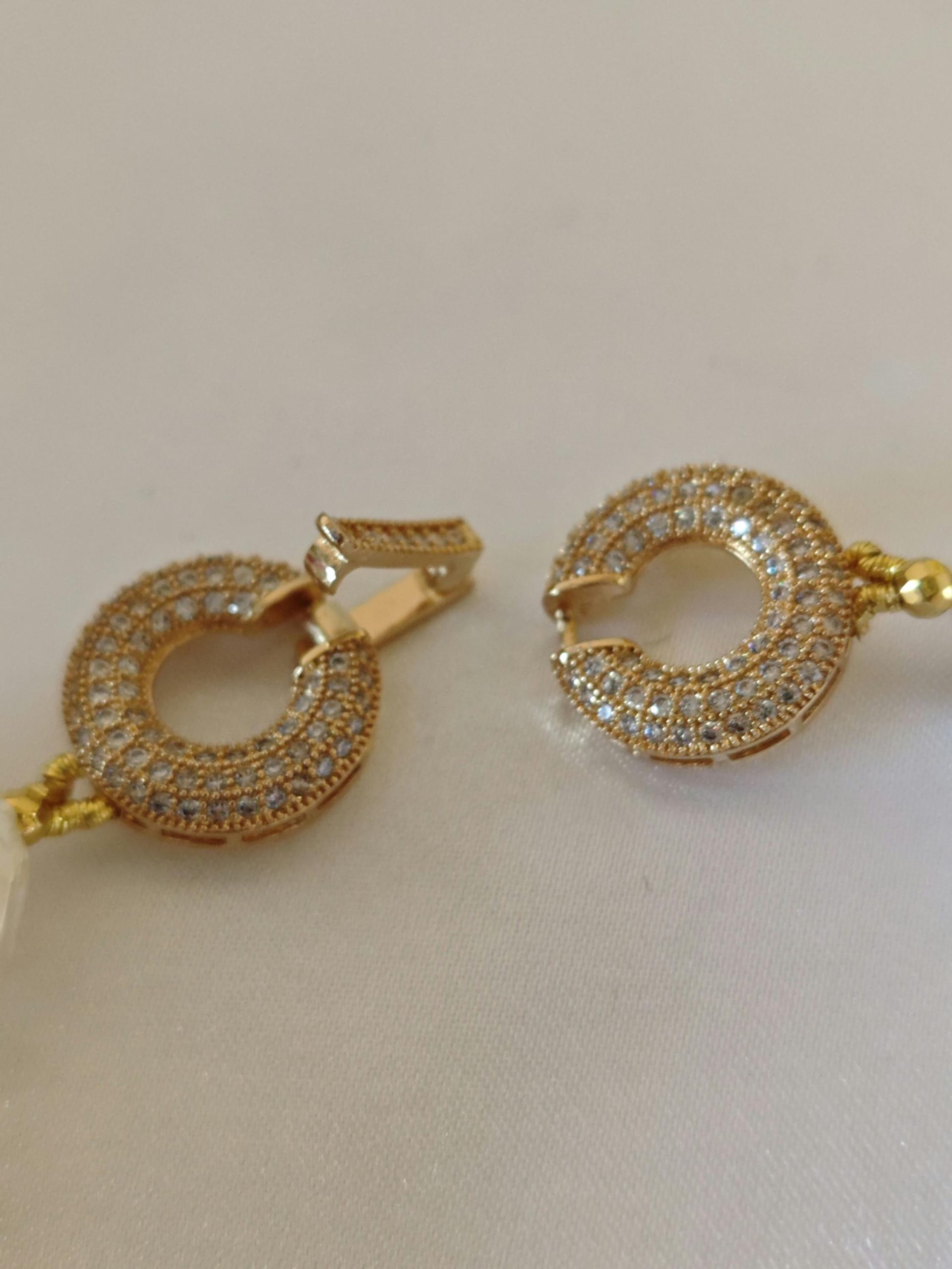 Chiusura laterale gioiello a clip in acciaio dorato con cristalli zirconi.
