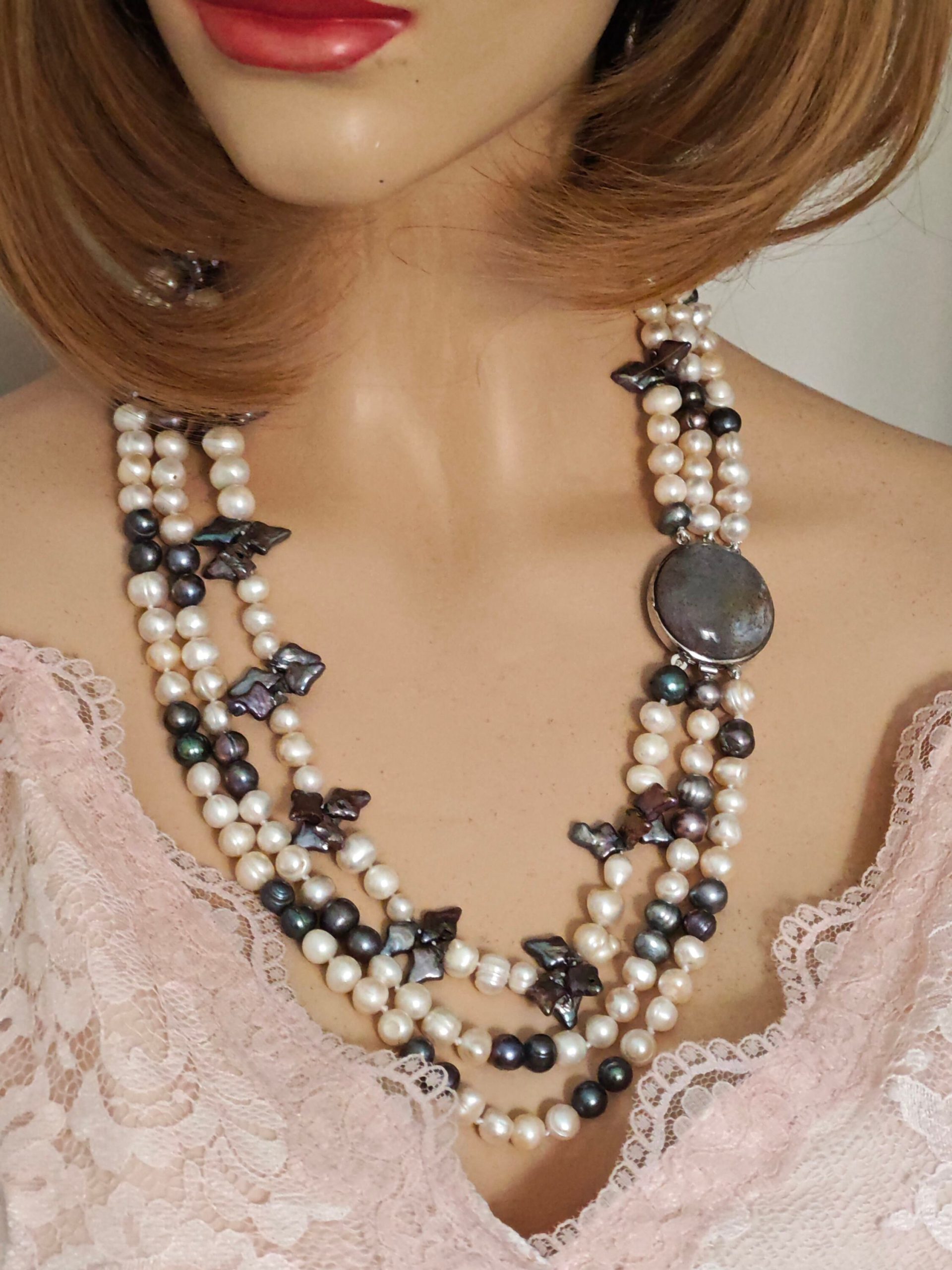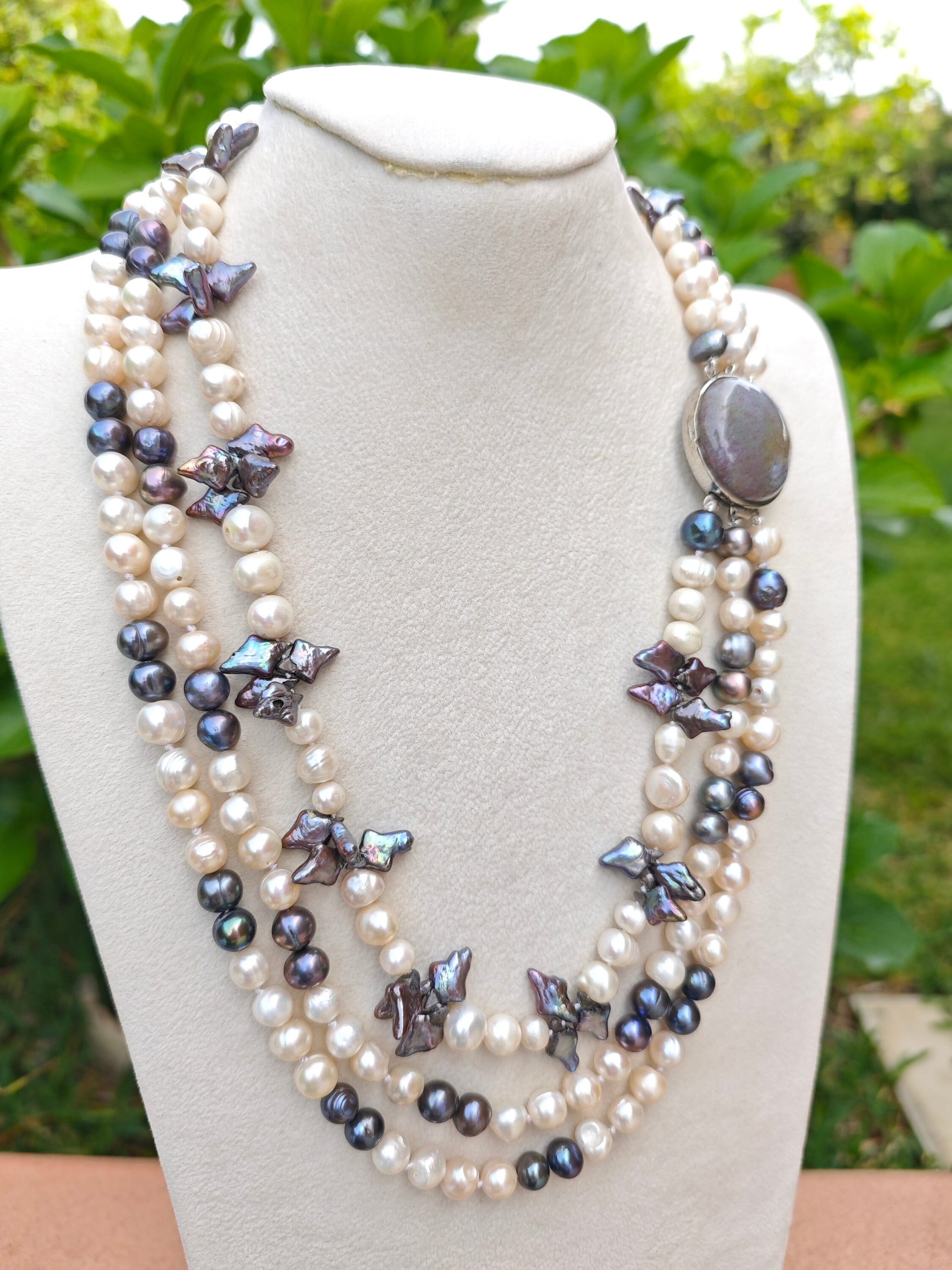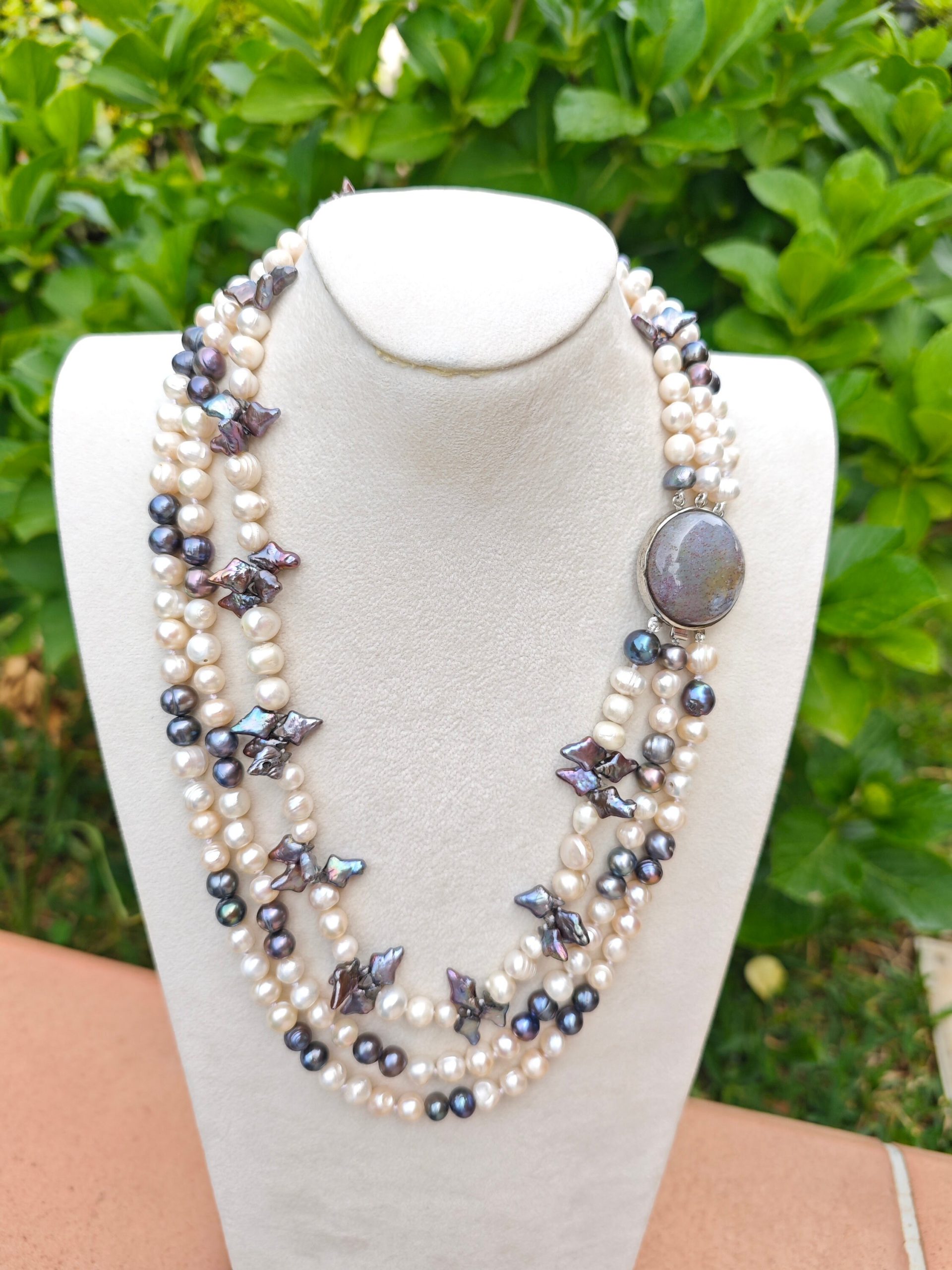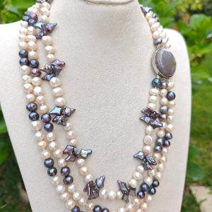 Categoria: Collane Perle Tag: collana_3_fili, collana_elegante, collana_gioiello, collana_girocollo, collana_maxi, collana_multifilo, collana_perle, collana_pietre_dure, perle_bianche, perle_grigie