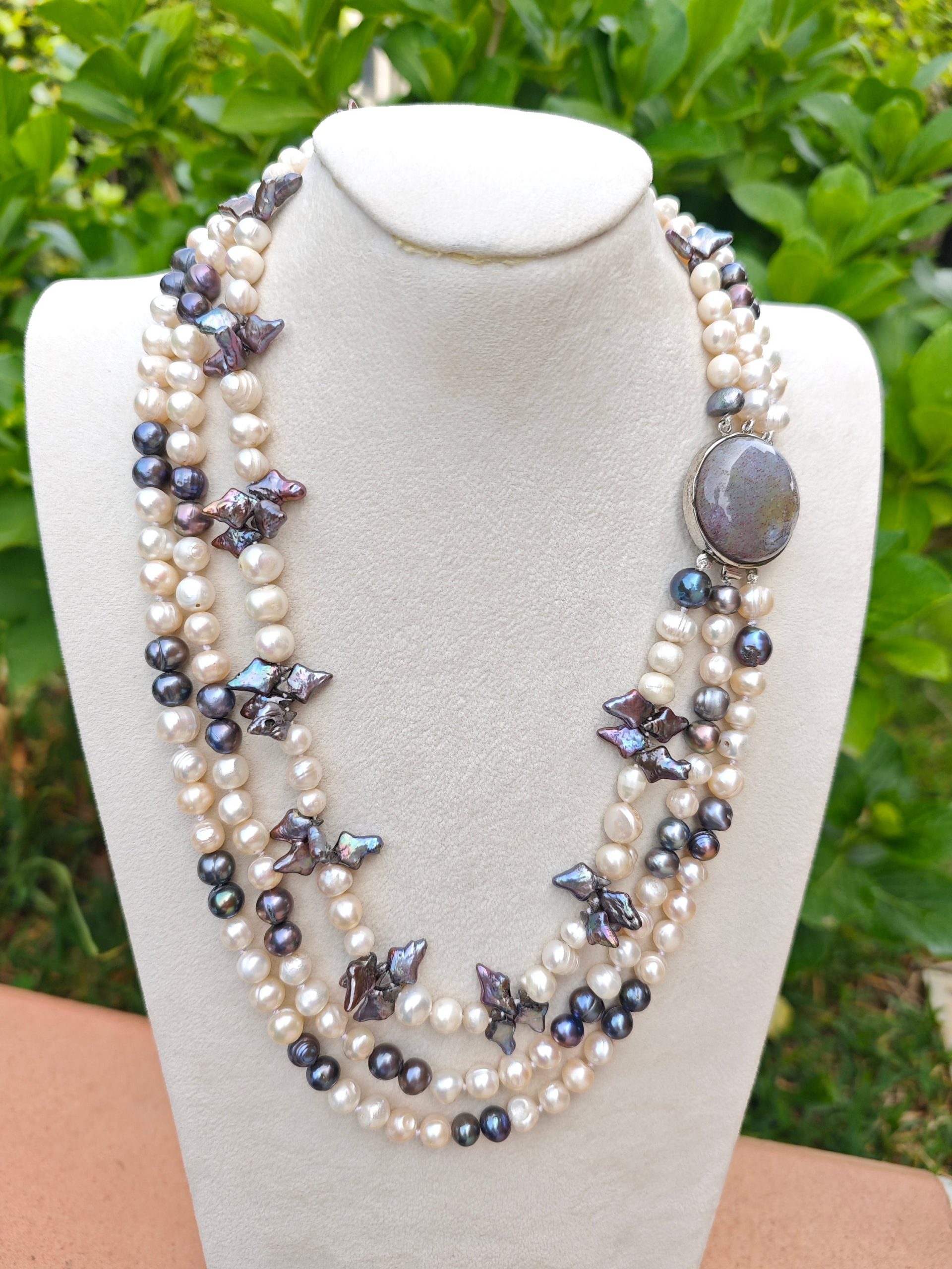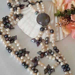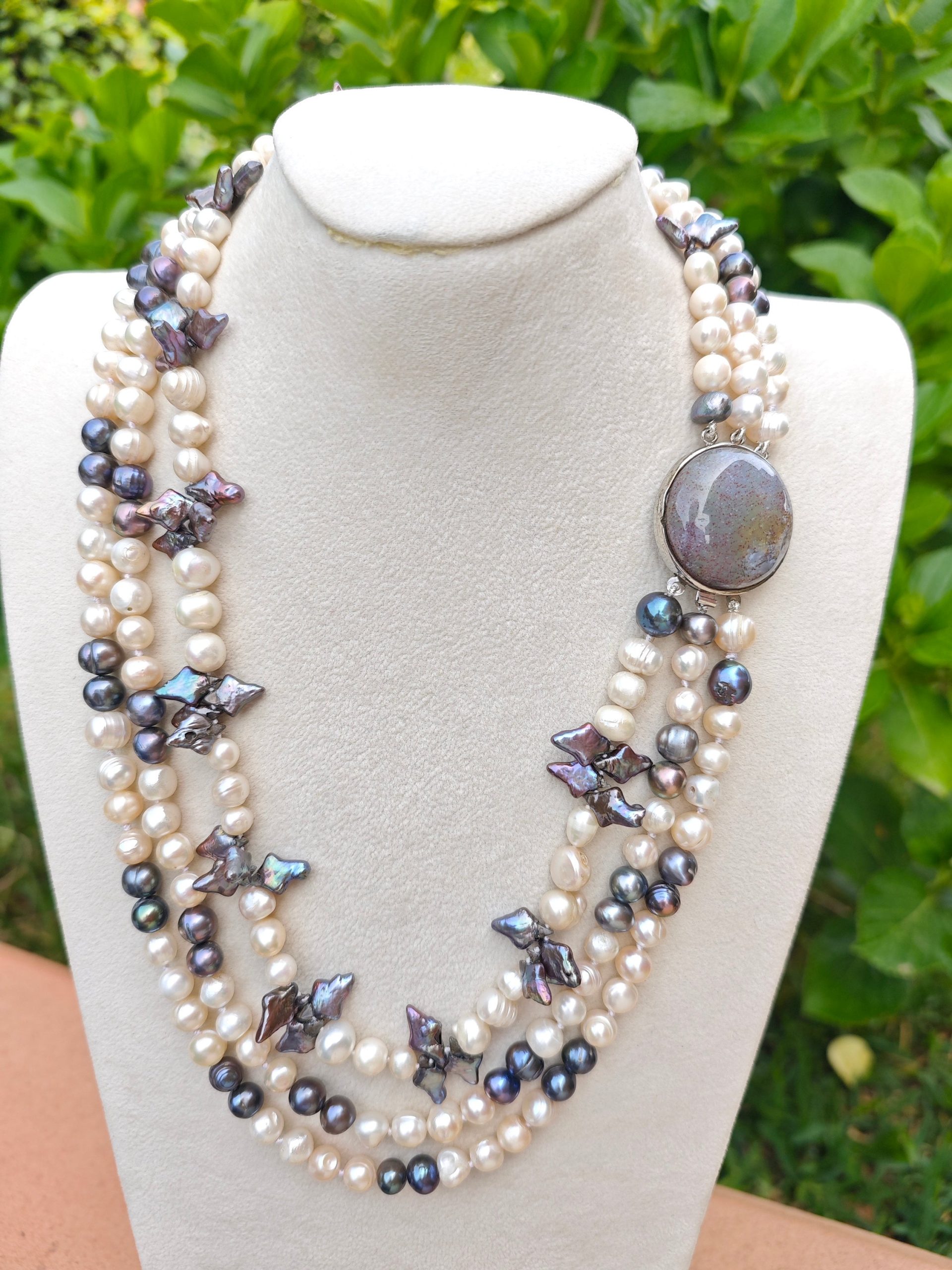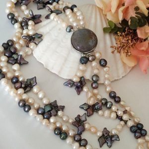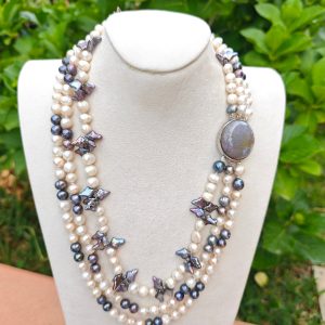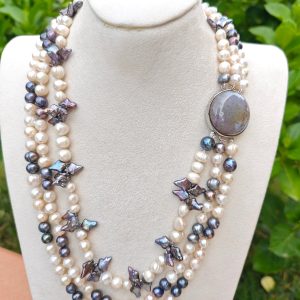 Categoria: Collane Perle Tag: collana_3_fili, collana_elegante, collana_gioiello, collana_girocollo, collana_maxi, collana_multifilo, collana_perle, collana_pietre_dure, perle_bianche, perle_grigie