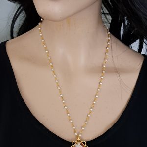 Collana cammeo conchiglia con perle bianche e pietre quarzo citrino, gioielli italiani