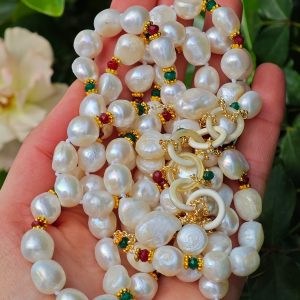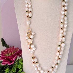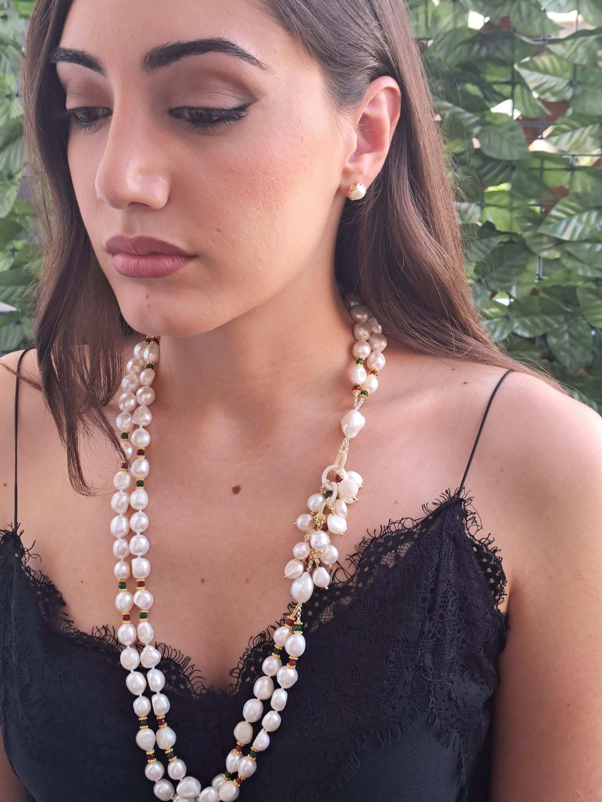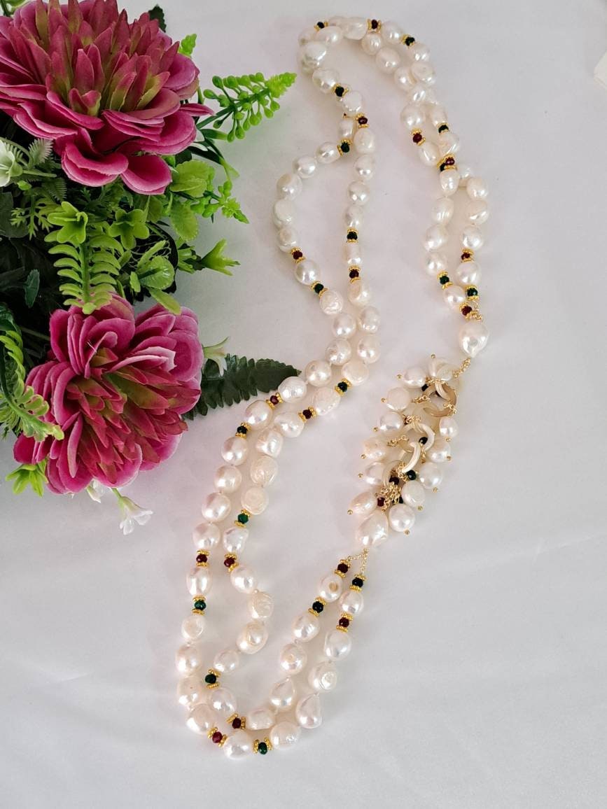 Collana perle barocche bianche con pietre dure , collana 2 fili, gioielli italiani