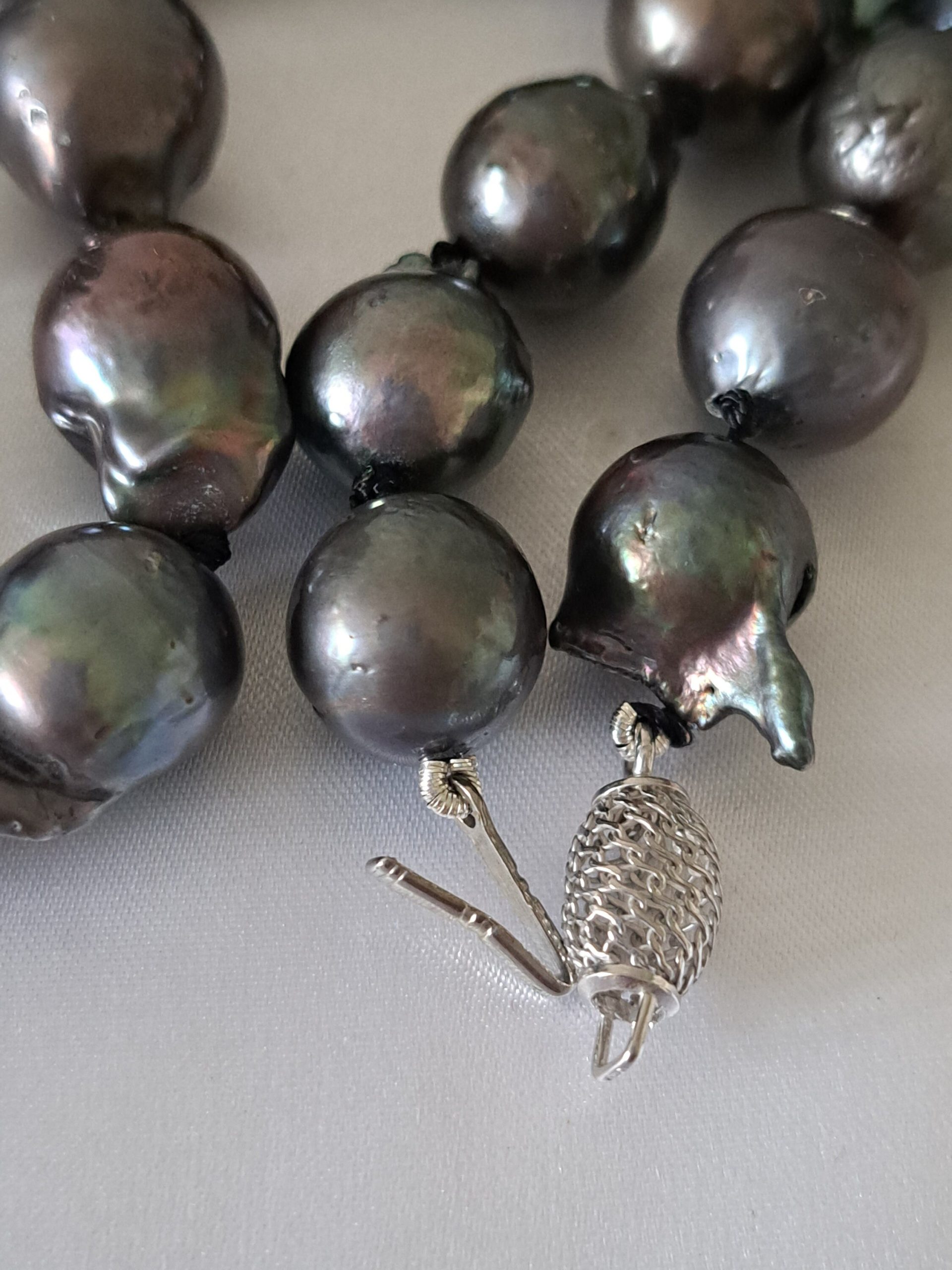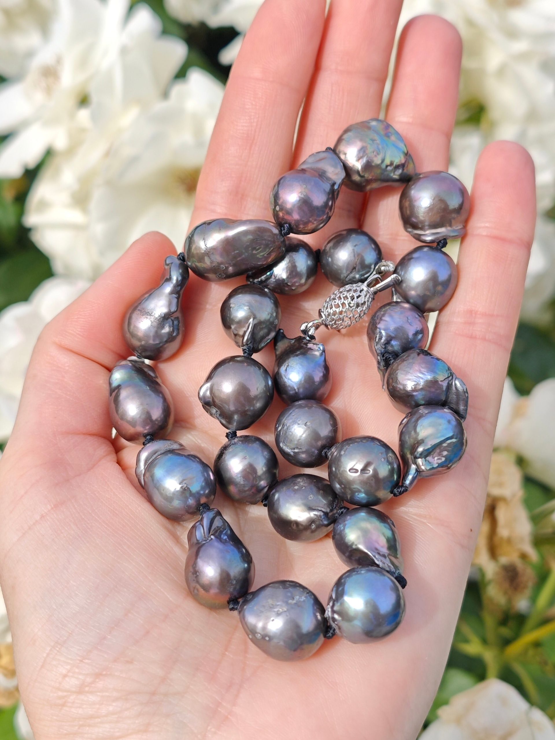 Collana perle barocche grigie e argento 925 , gioielli italiani