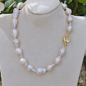 Collana girocollo perle barocche bianche con chiusura in argento 925 placcato oro,  gioielli italiani