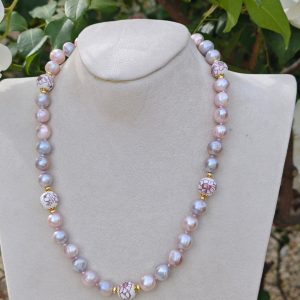 Collana CAMELIA  perle naturali rosa con perle porcellana cinese e argento 925 , collana moderna