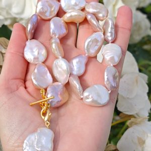 Collana girocollo perle barocche bianche con chiusura in argento 925 ,  gioielli italiani