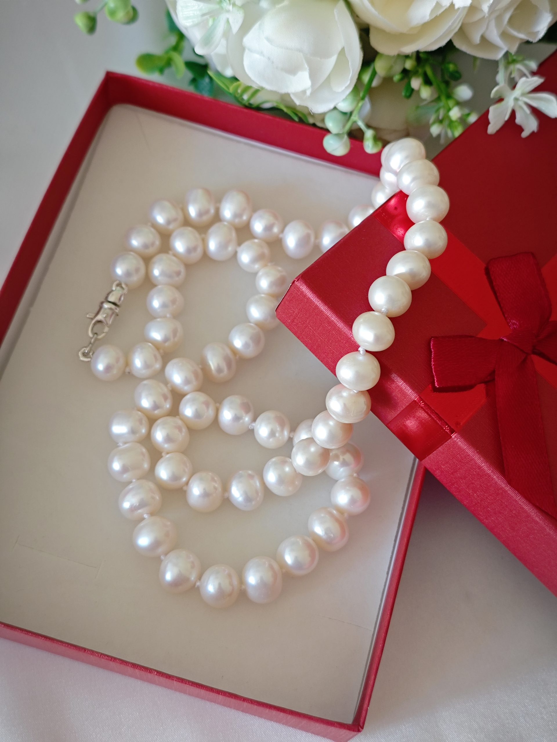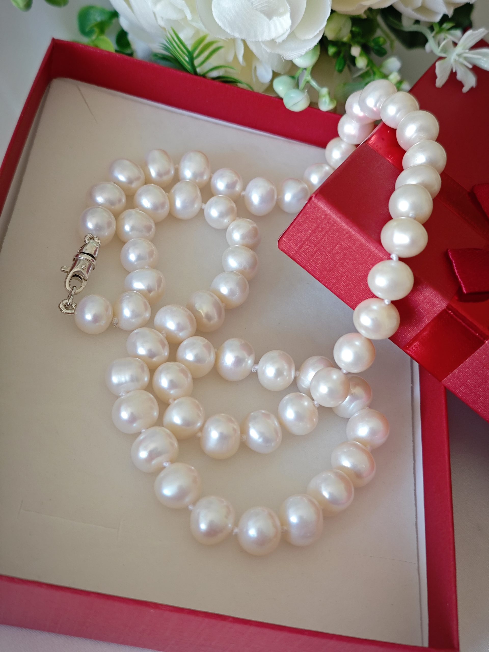 • Collana perle bianche naturali 10/11 mm con chiusura a moschettone in argento 925 placcato oro.