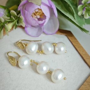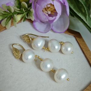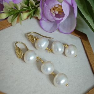 Collana con orecchini perle bianche naturali e argento 925, gioielli italiani