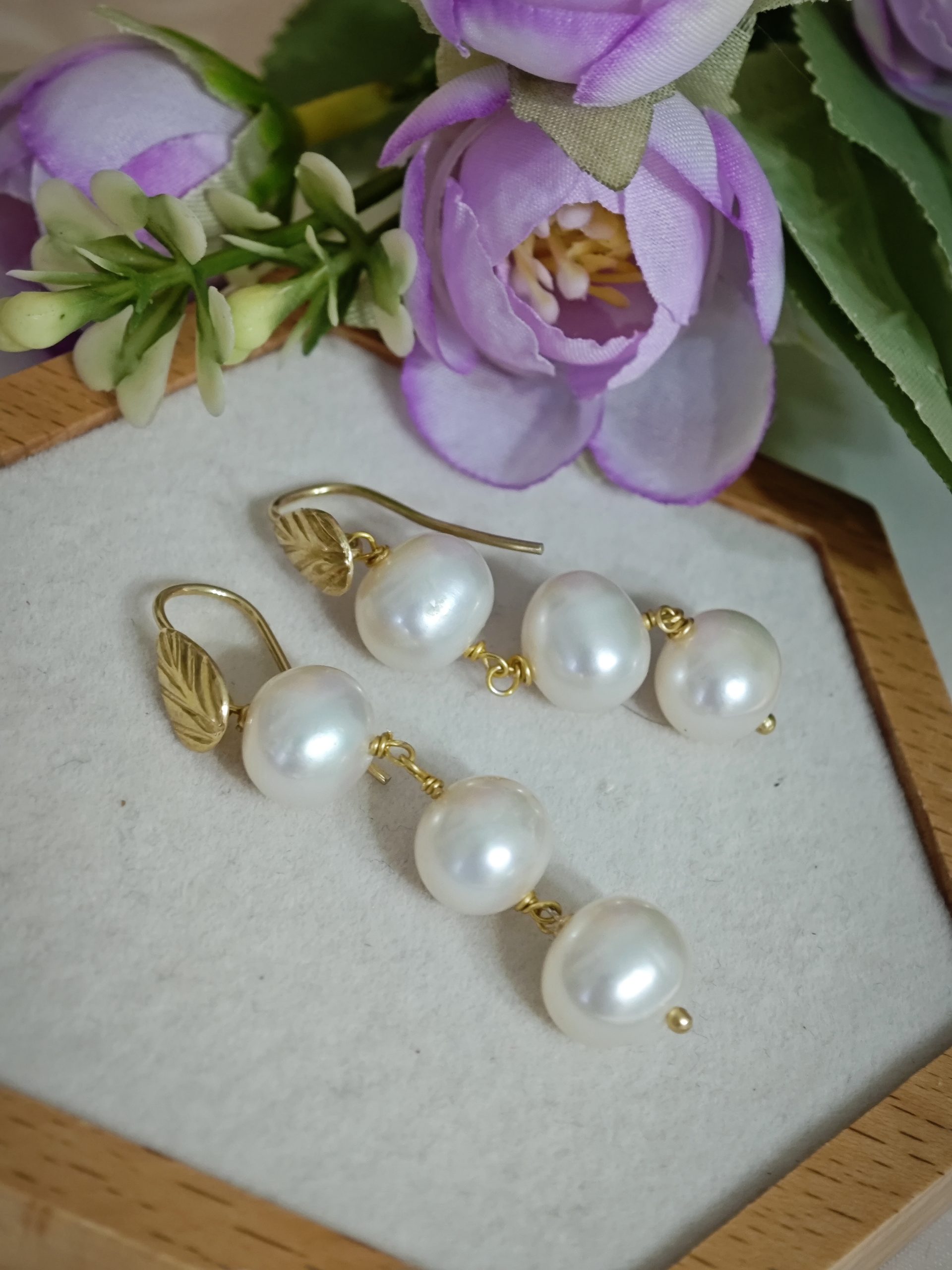 Orecchini abbinati con chiusura a monachelle in argento 925 placcato oro, lunghezza 5 cm